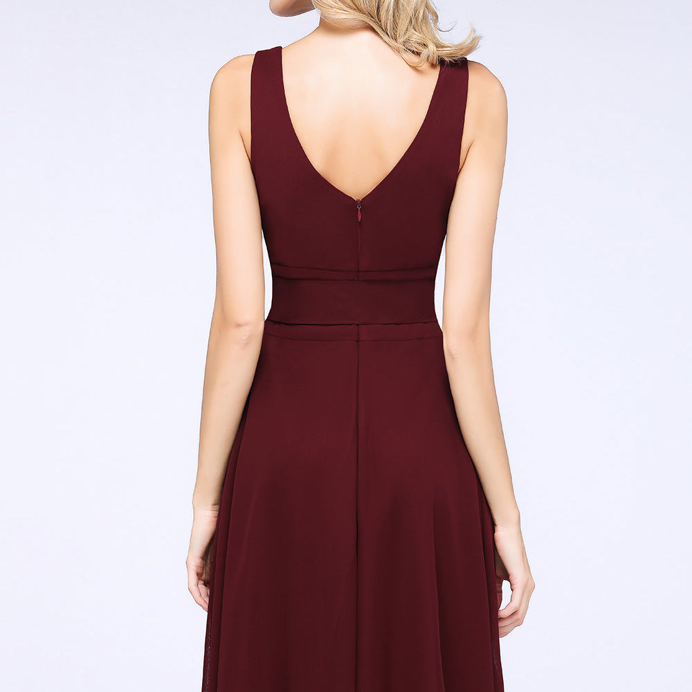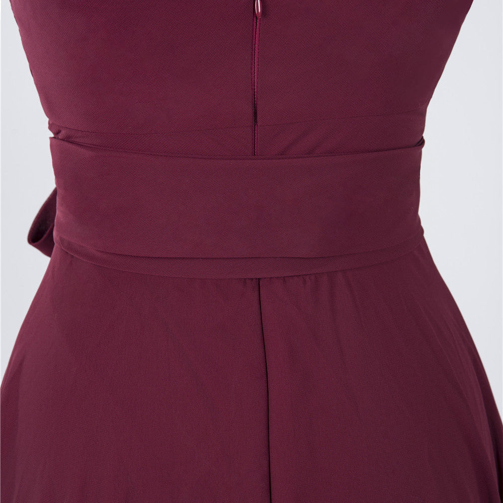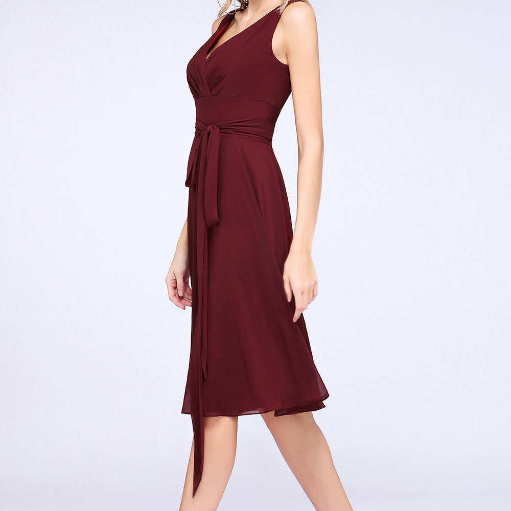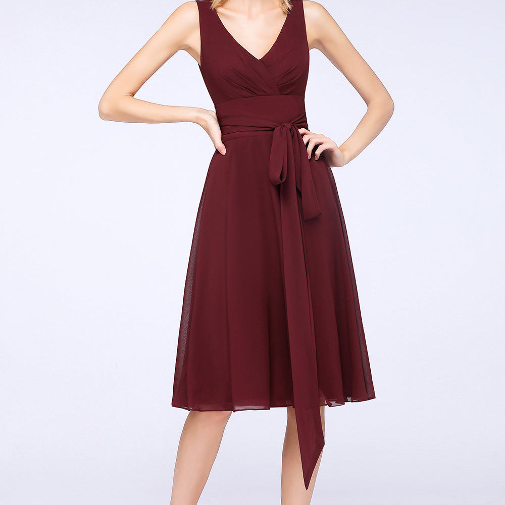 A-Line Chiffon Straps V-Neck Short Bridesmaid Dress with Bow Sash