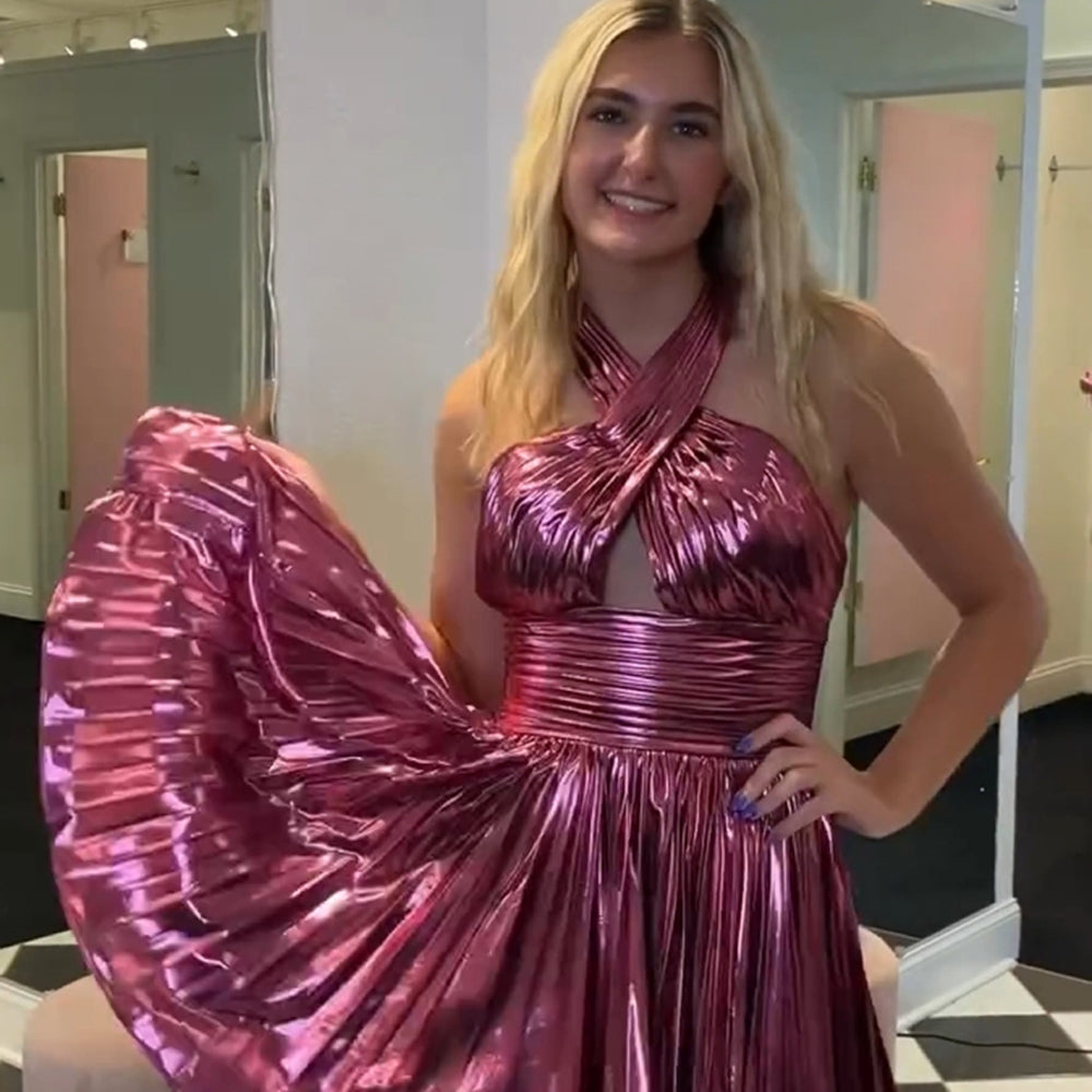 A Line Golden Criss Cross Halter Pleated Short Homecoming Dress
