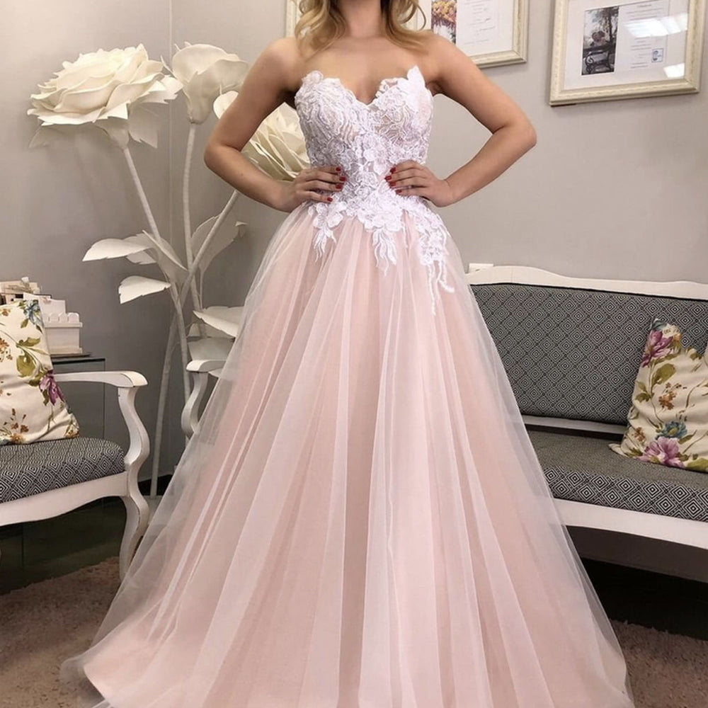 A-line Sweetheart Tulle Lace Formal Graduation Dresses Long Prom Dresses