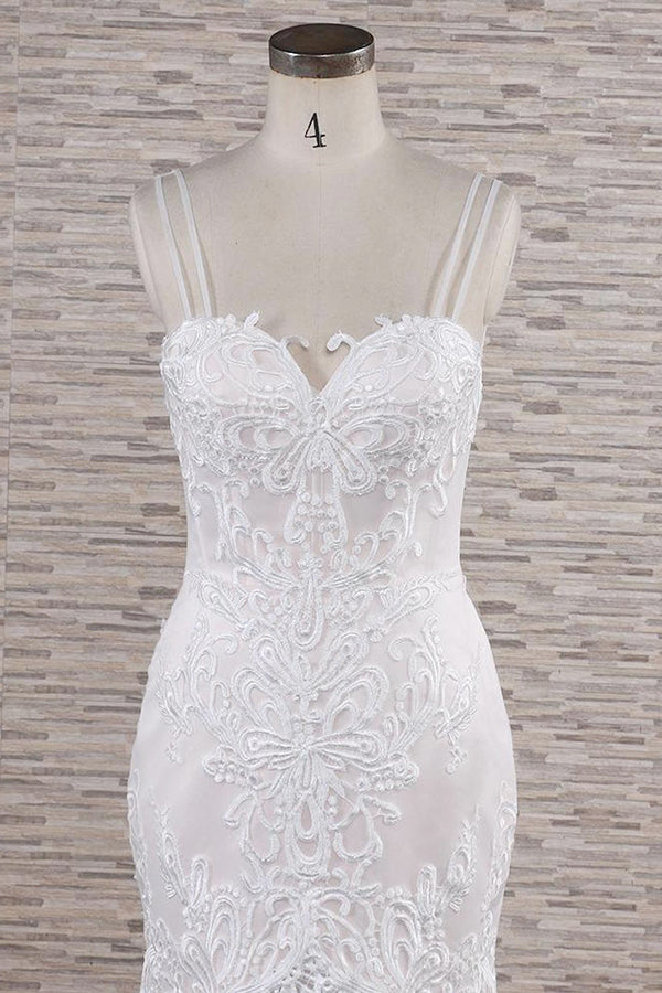 Chic Long Mermaid Sweetheart Spaghetti Strap Appliques Lace Wedding Dress