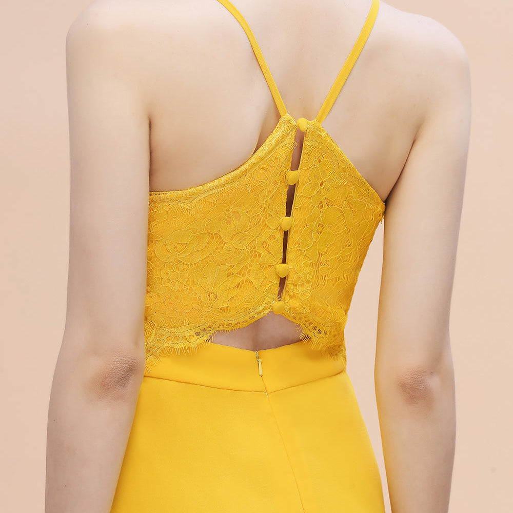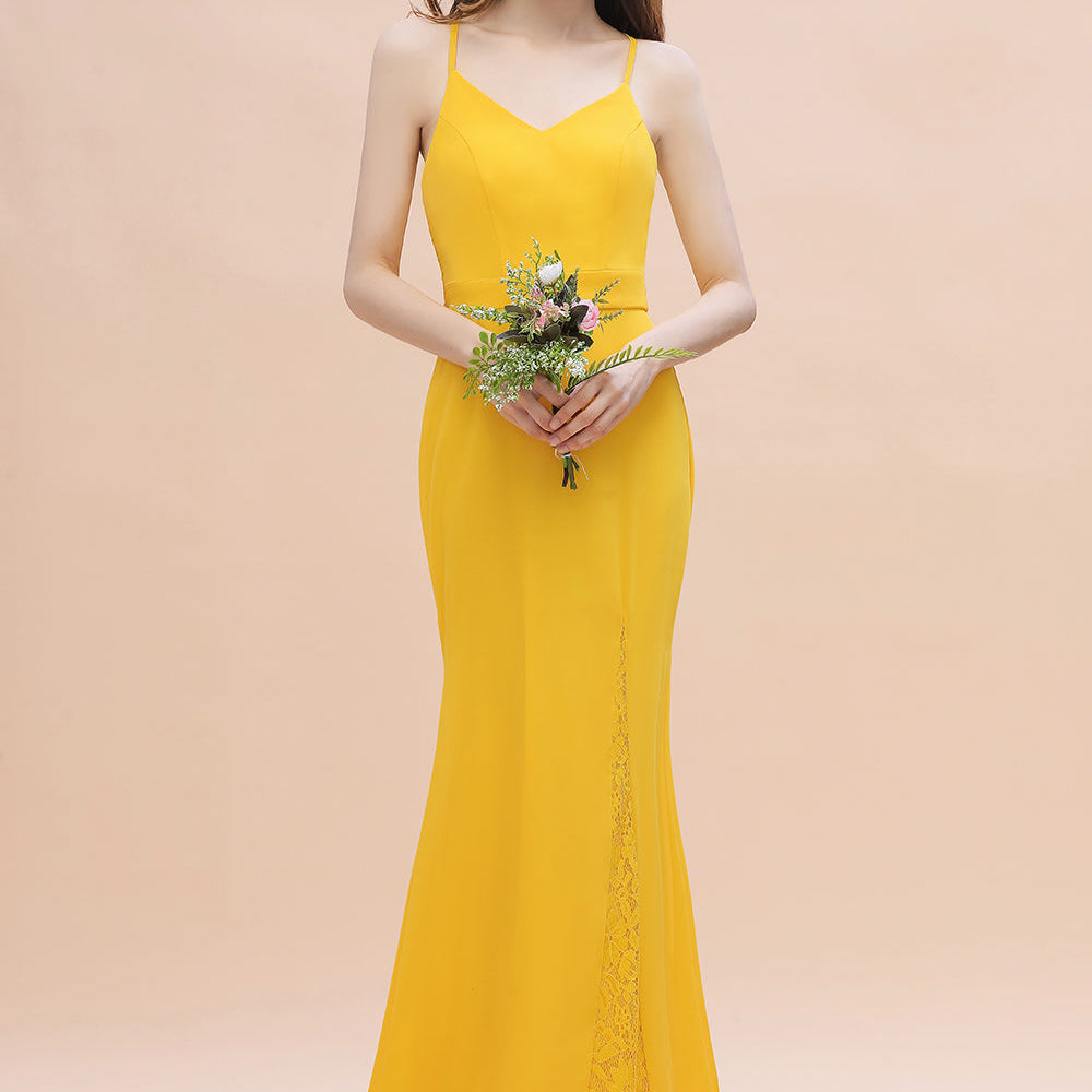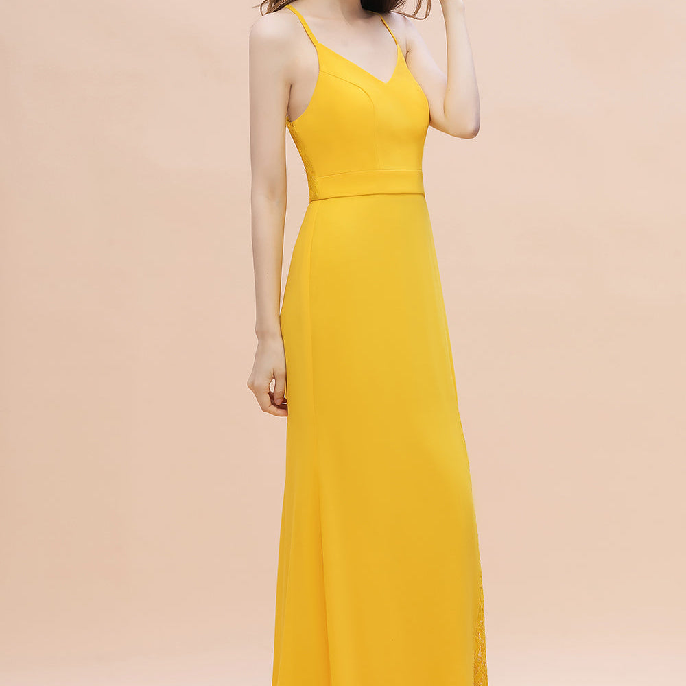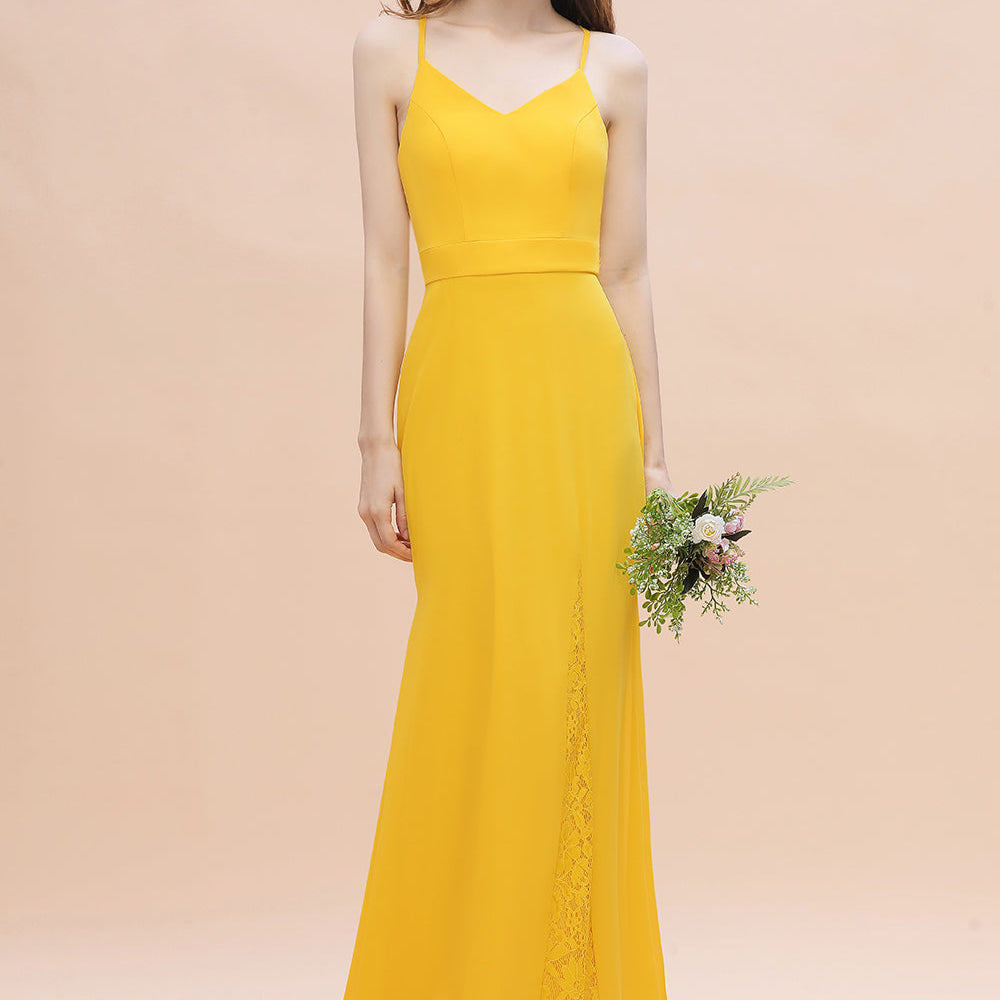 Chic Long V-neck Chiffon Backless Yellow Bridesmaid Dress