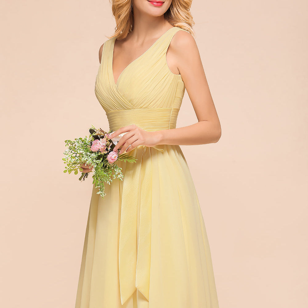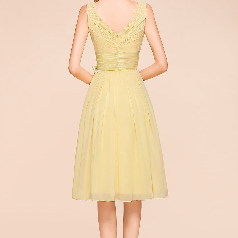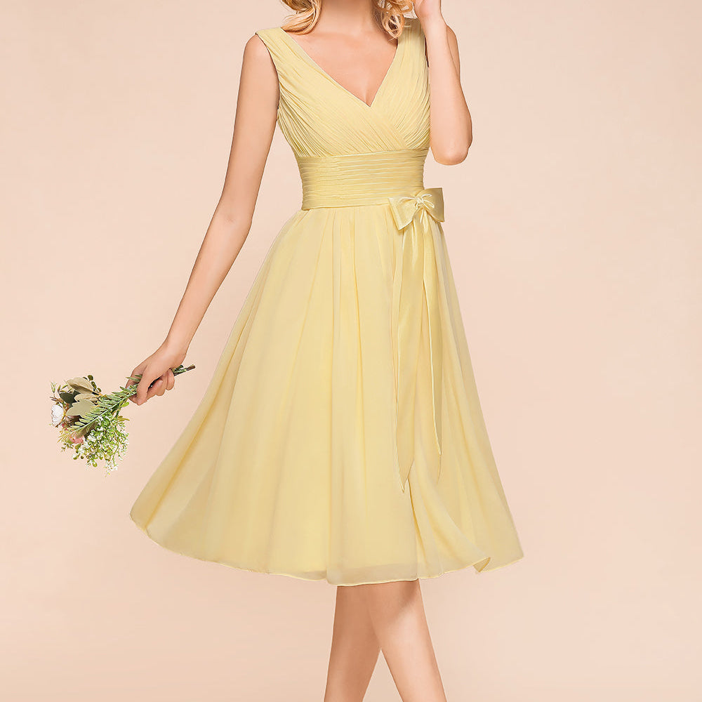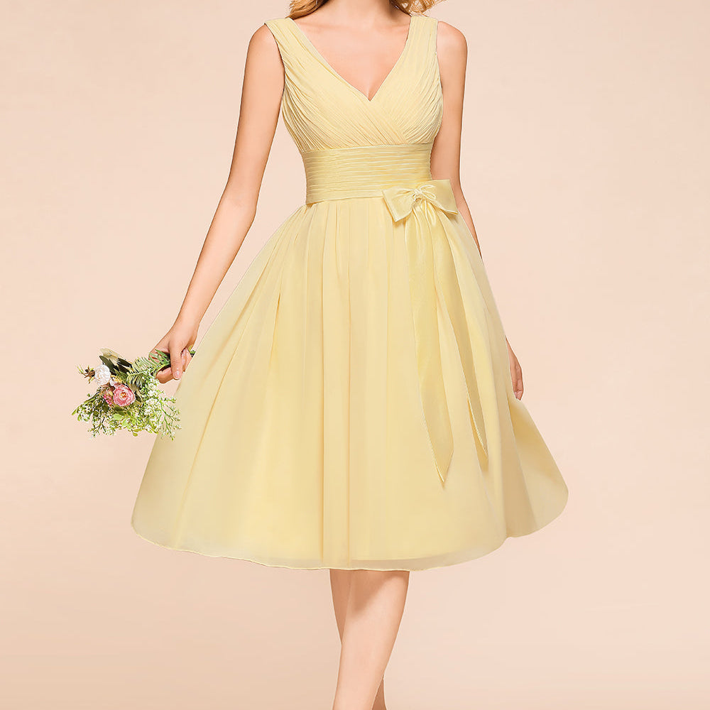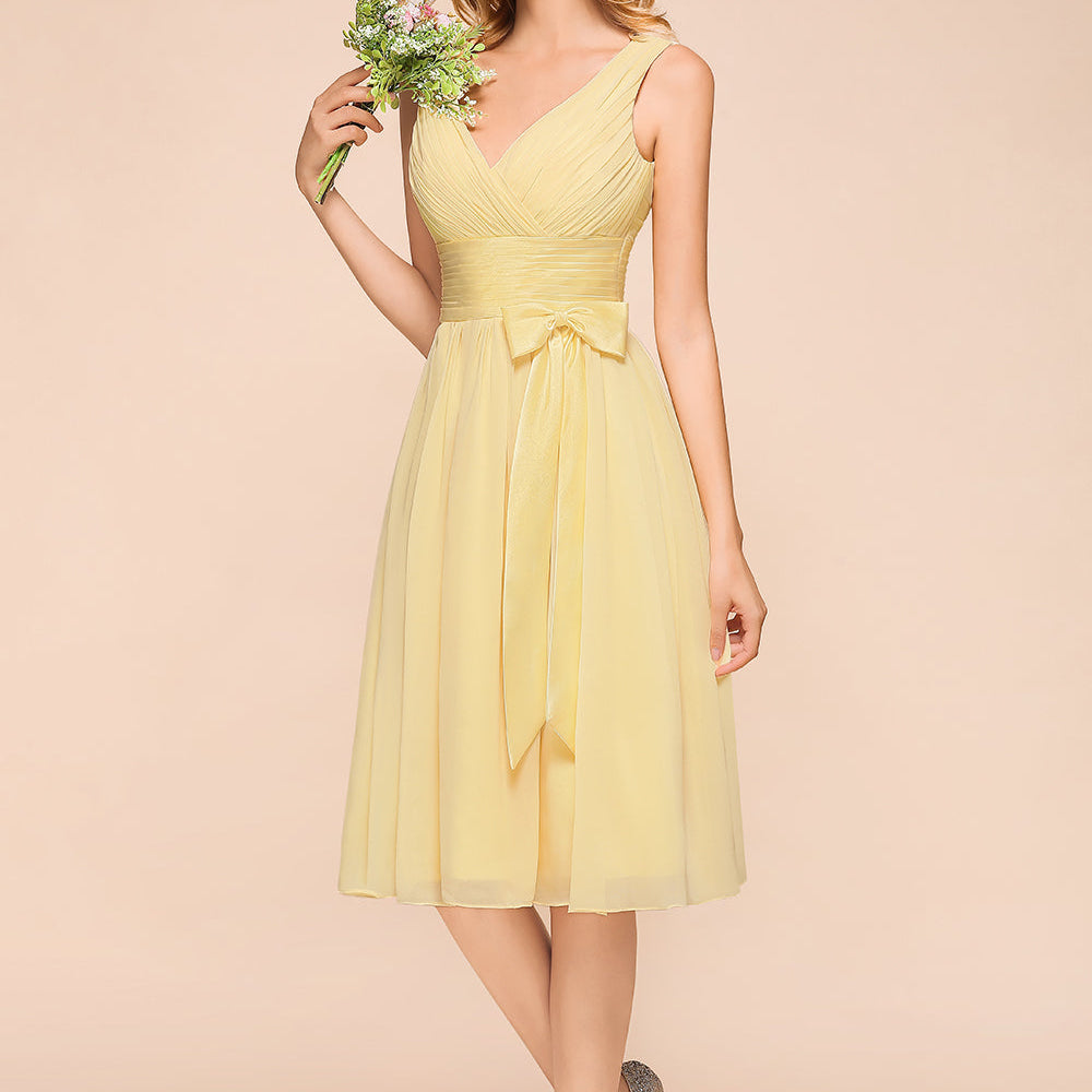 Classy Short A-line Chiffon Wide Straps V-neck Bridesmaid Dress With Bowknot