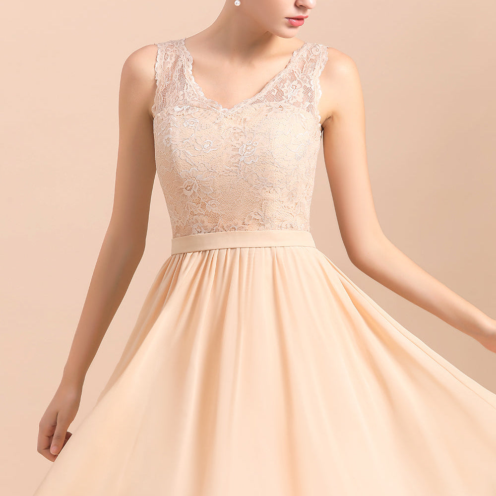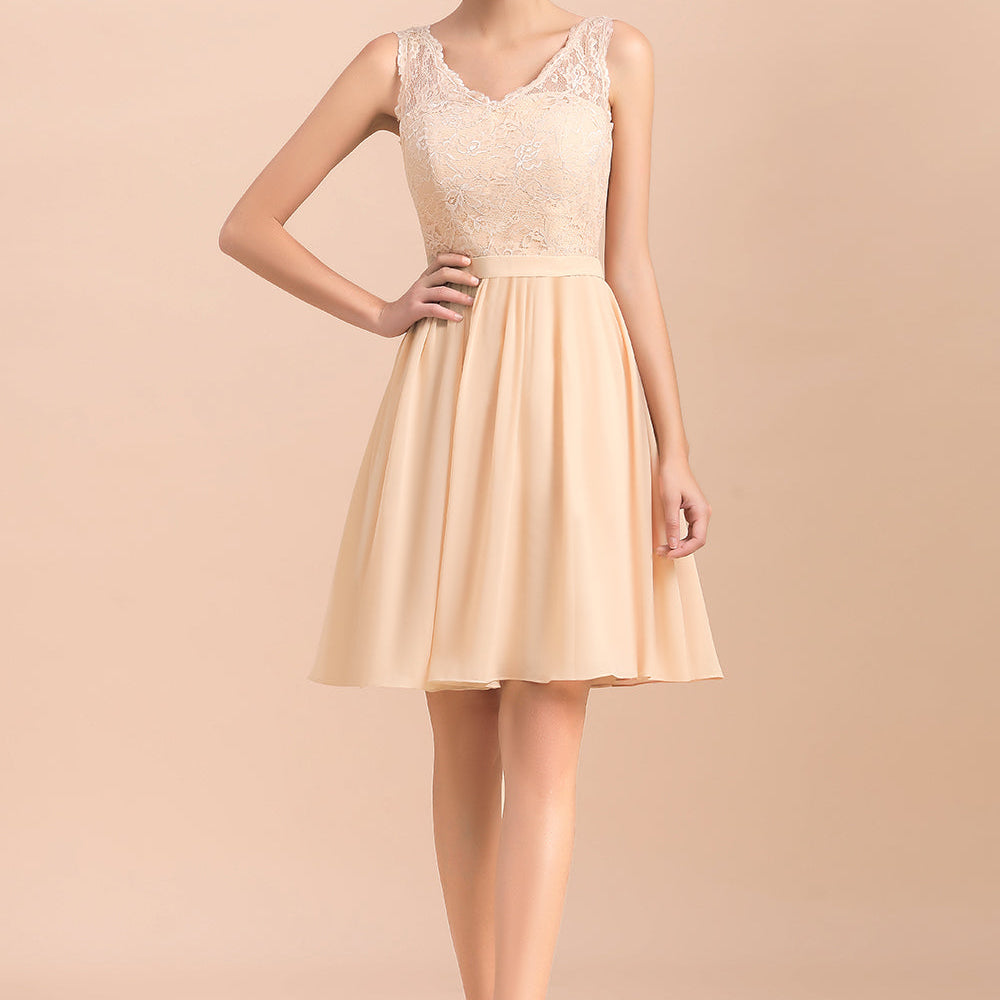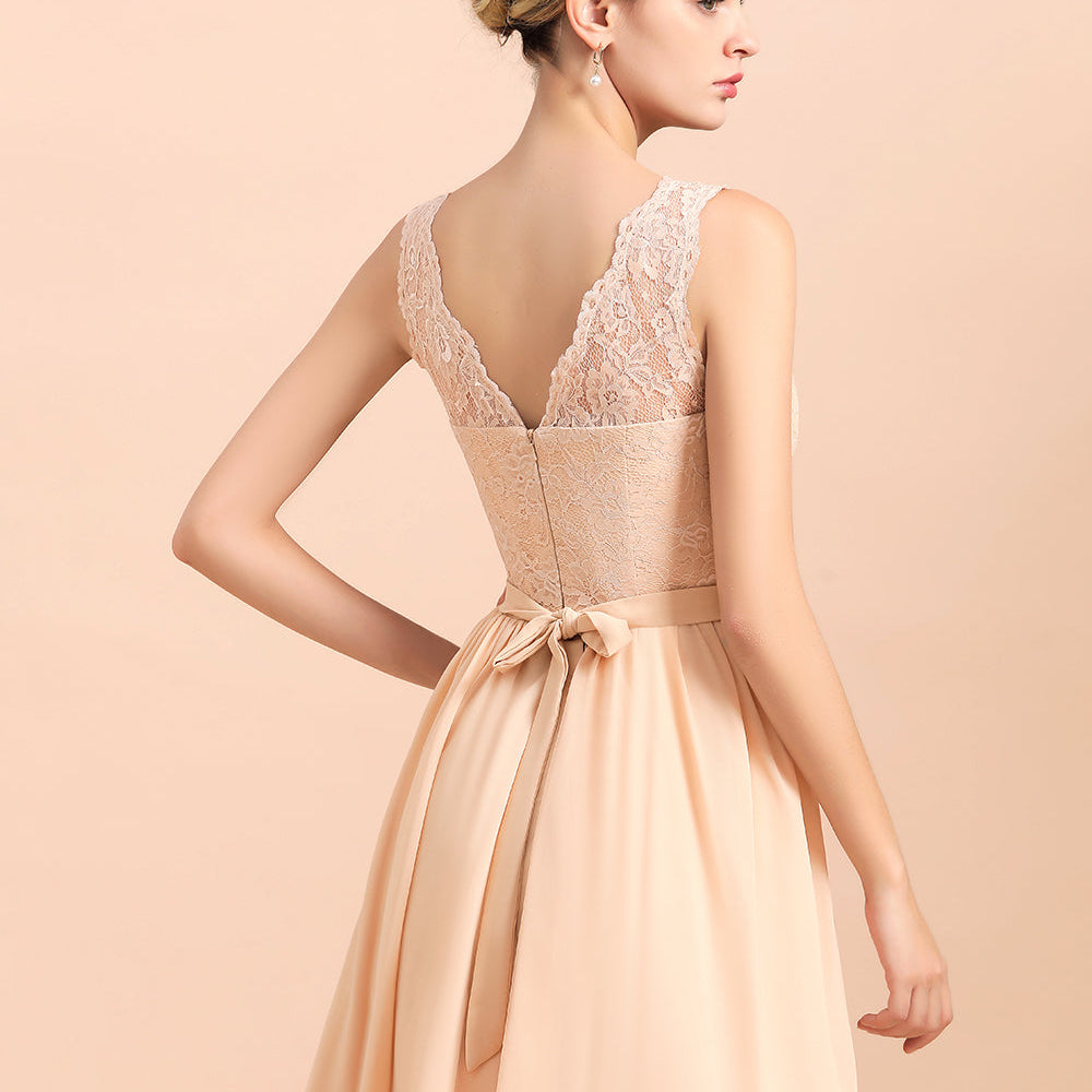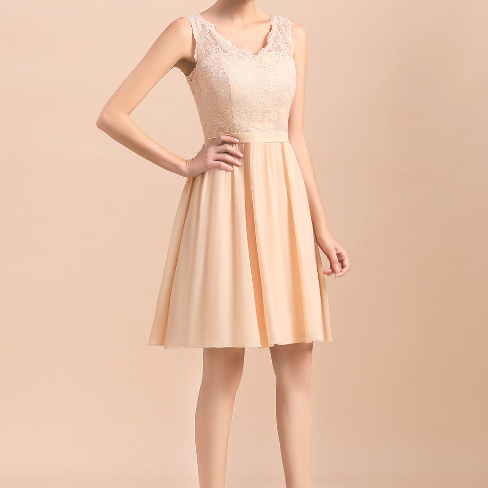 Cute A-Line V-neck Chiffon Backless Short Bridesmaid Dress with Lace