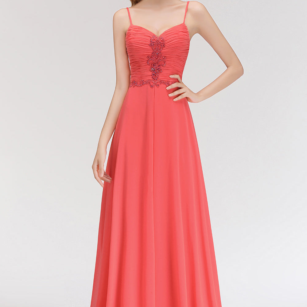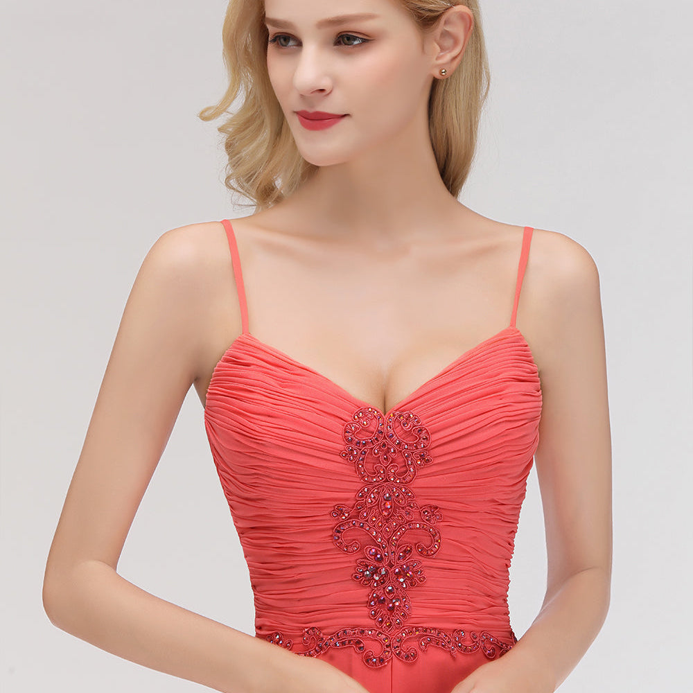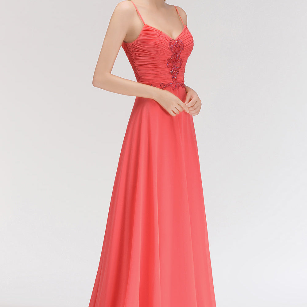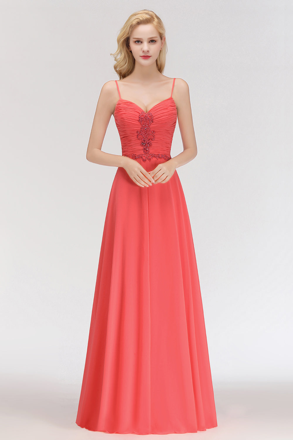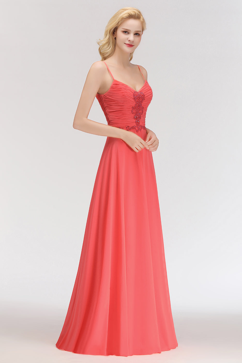 Elegant A-line Spaghetti Straps Ruffles Appliques Long Bridesmaid Dress