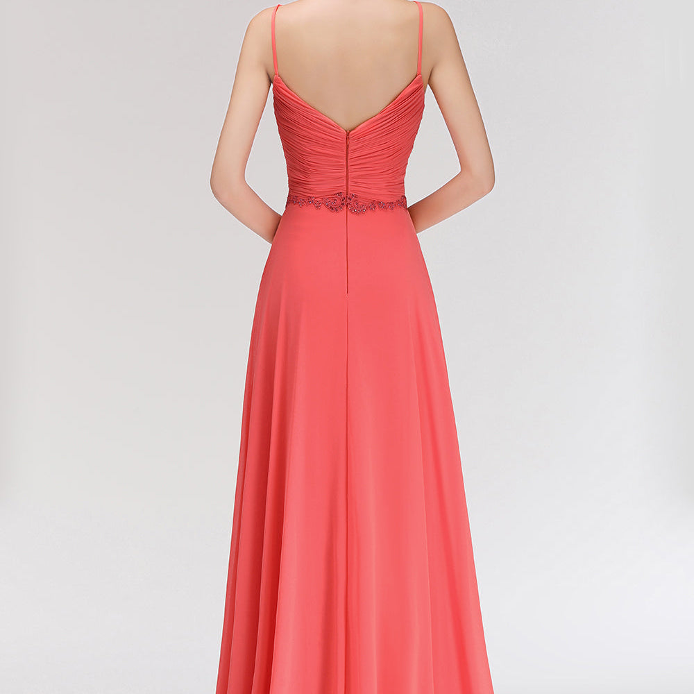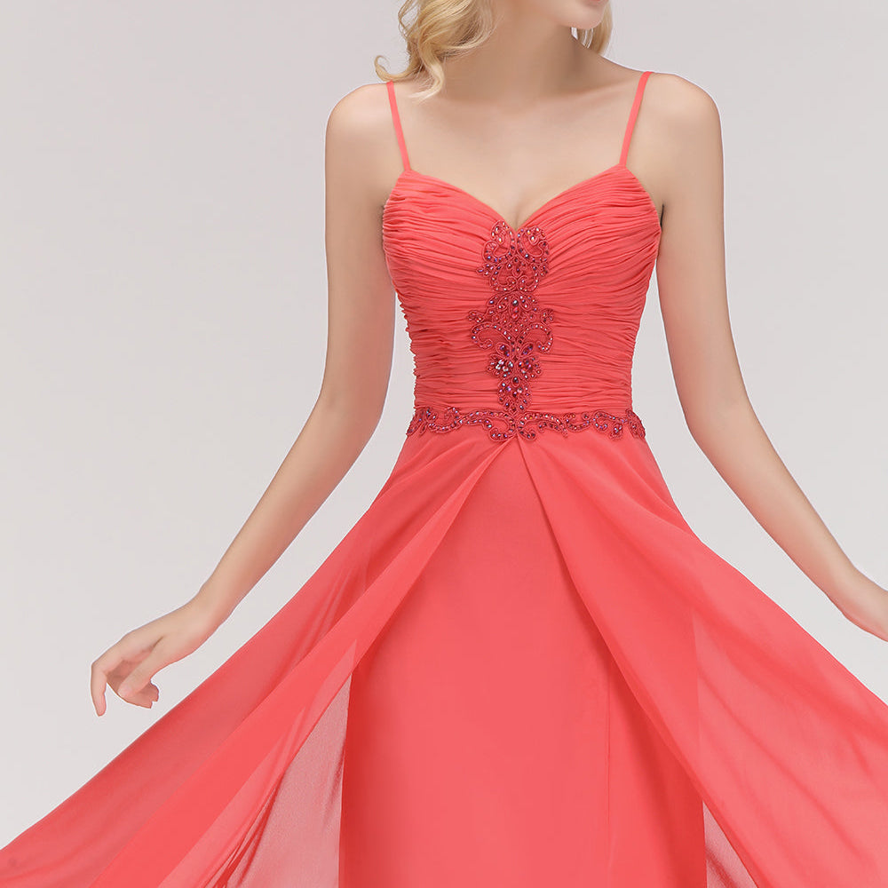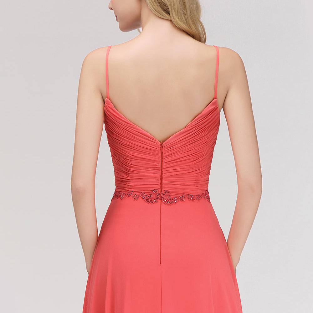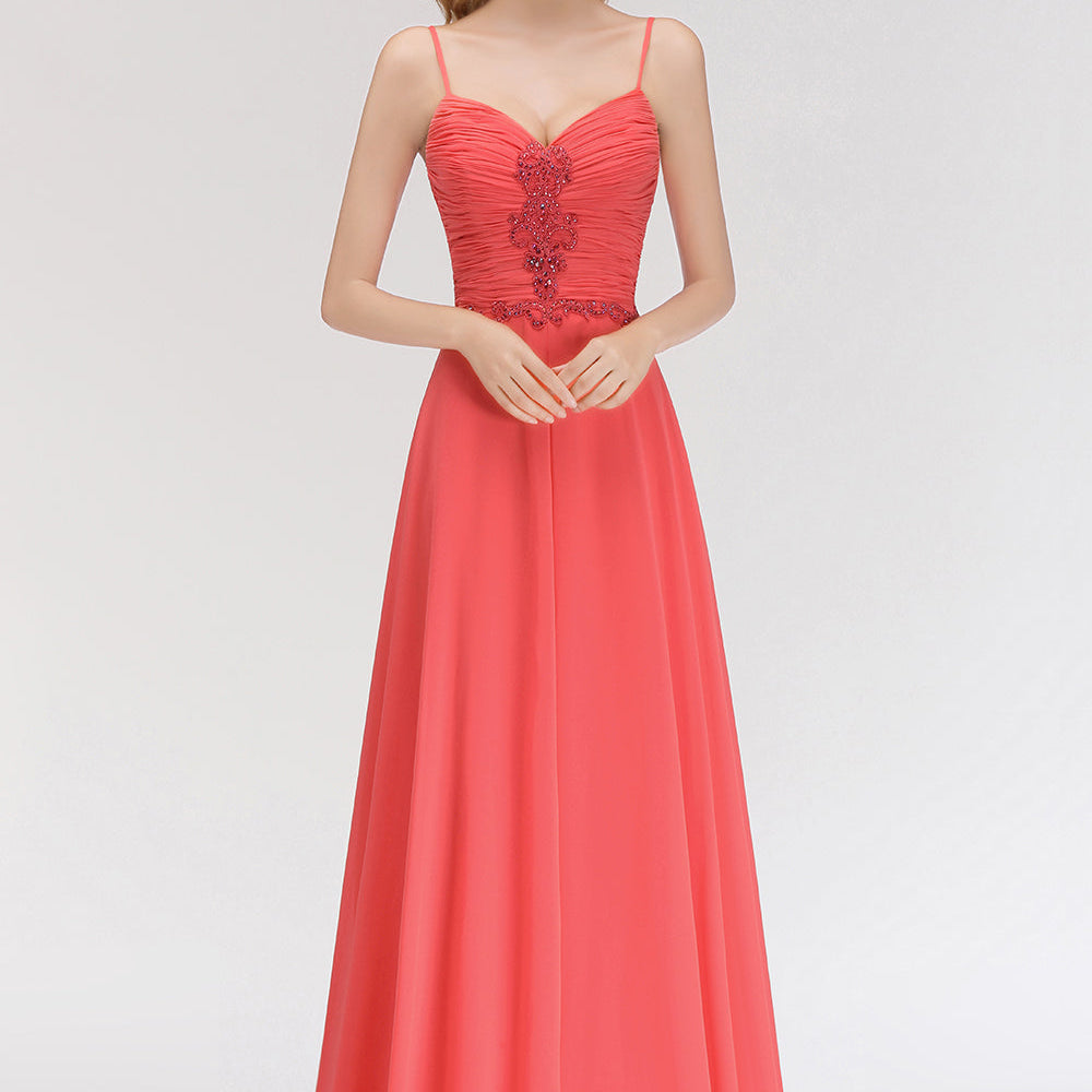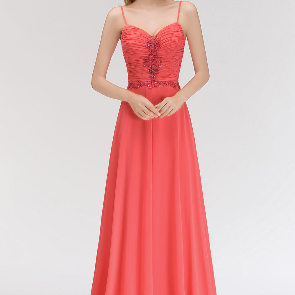 Elegant A-line Spaghetti Straps Ruffles Appliques Long Bridesmaid Dress