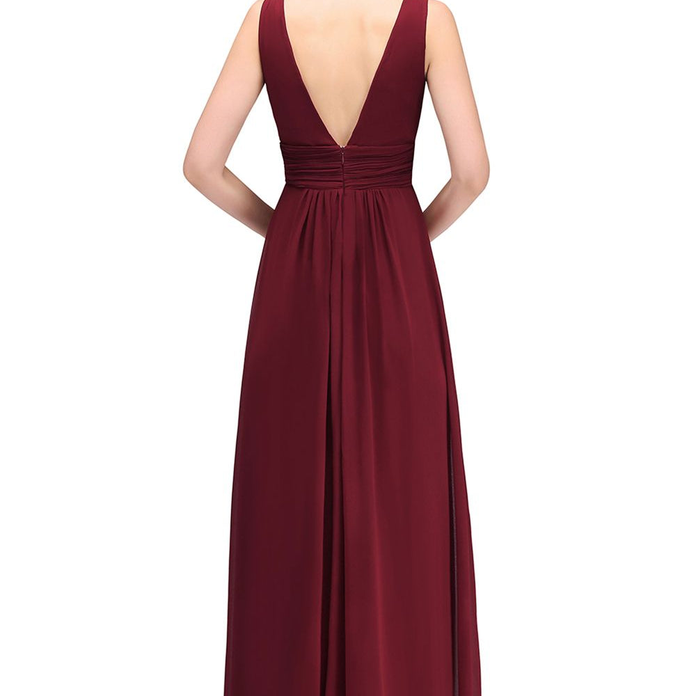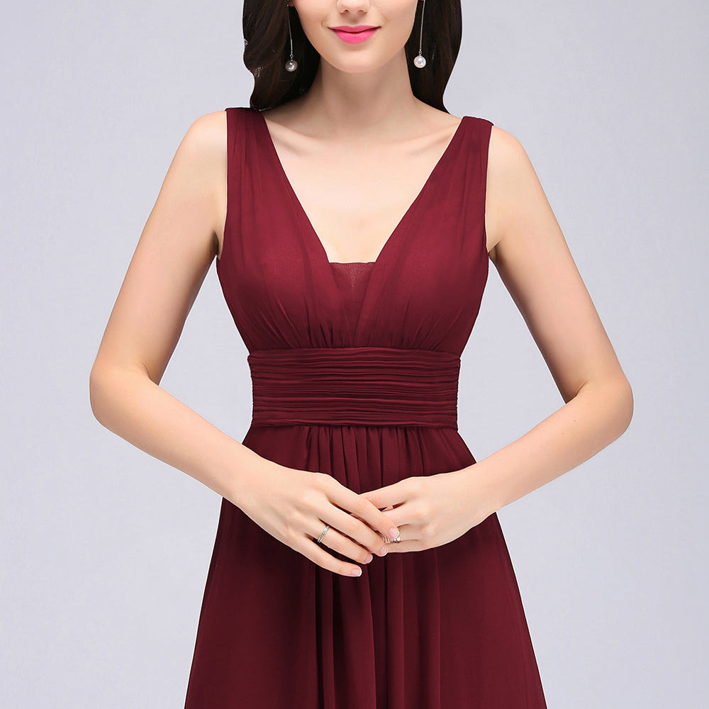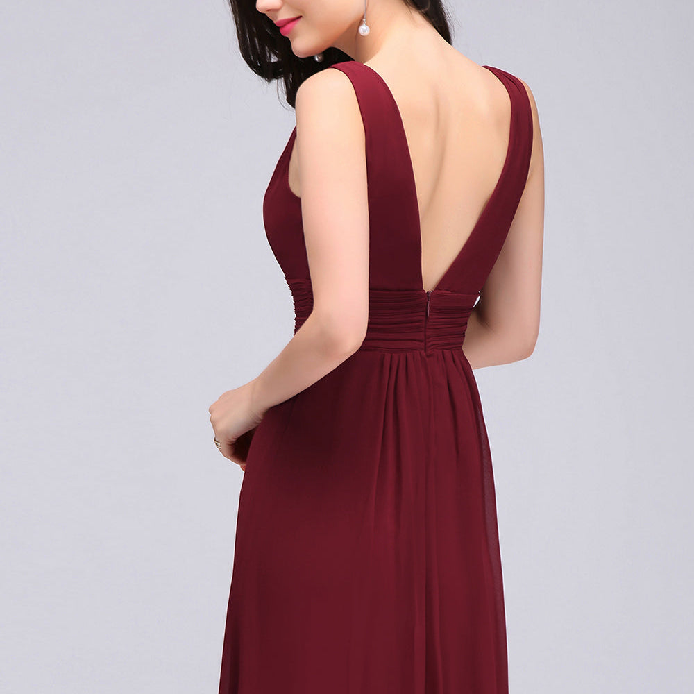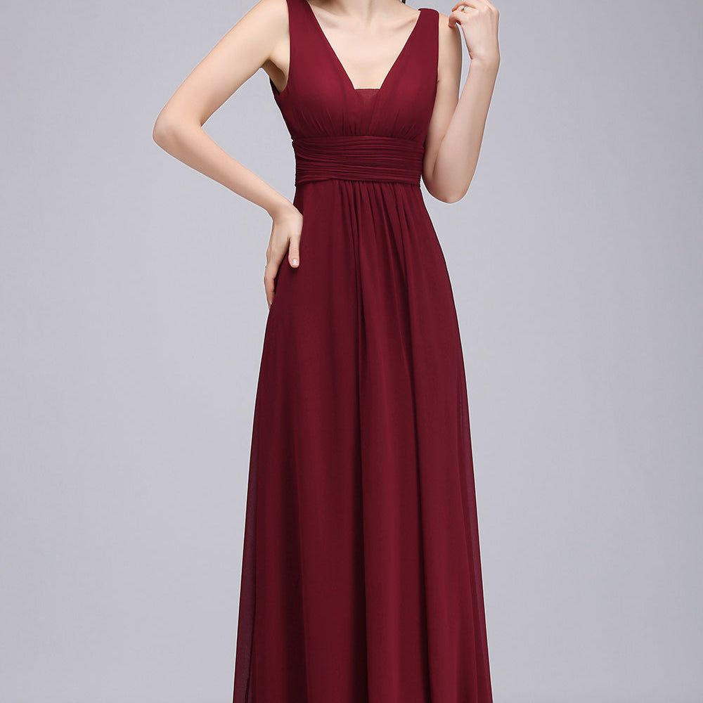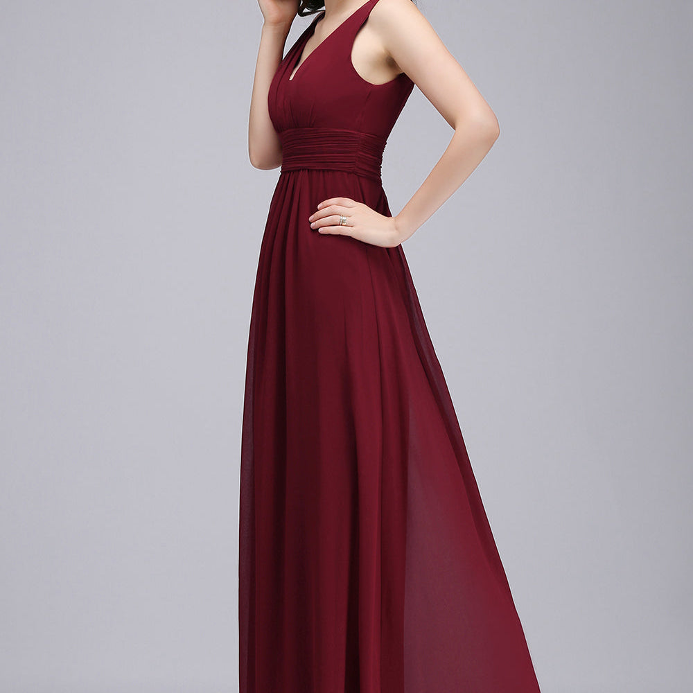 Elegant Long A-Line Chiffon V-Neck Sleeveless Ruffles Bridesmaid Dresses