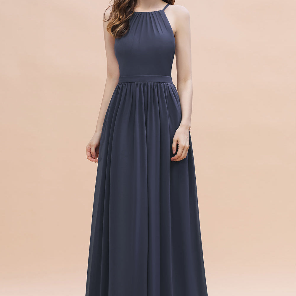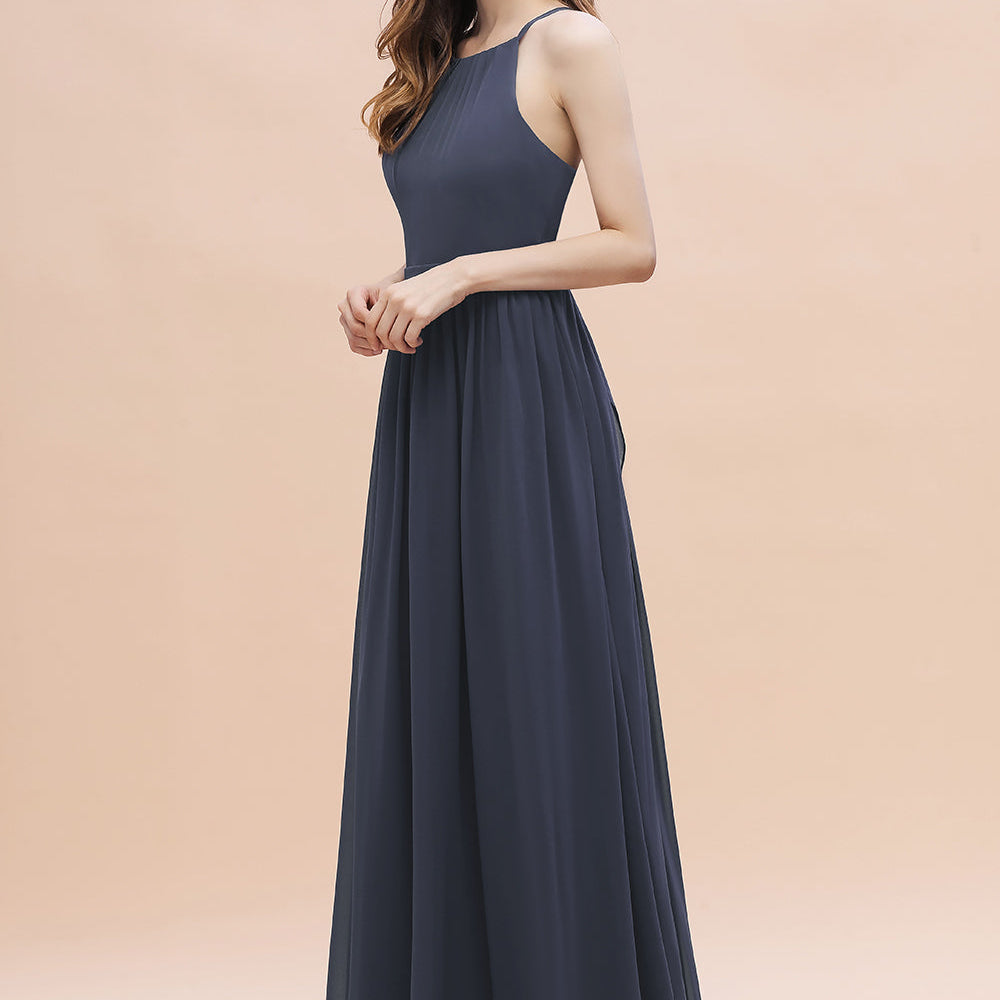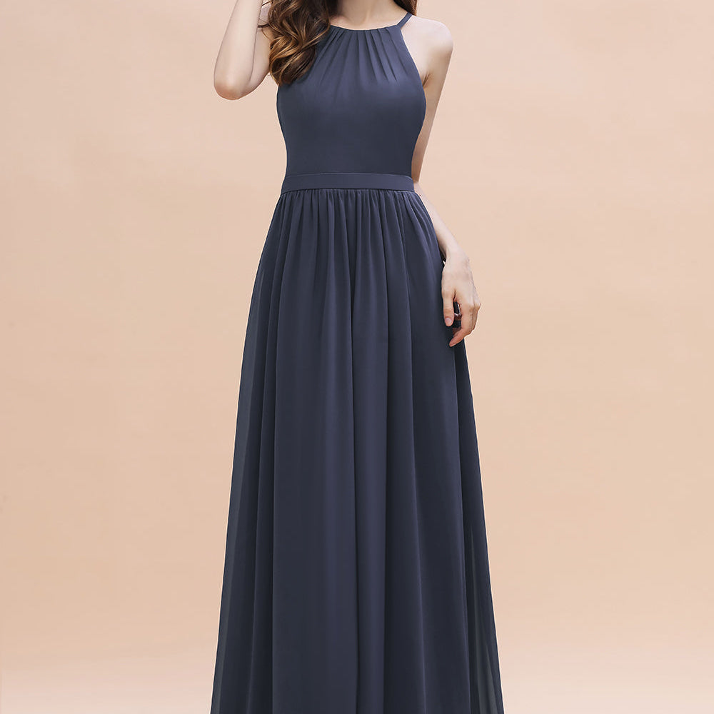 Elegant Long A-Line Halter Chiffon Backless Bridesmaid Dress