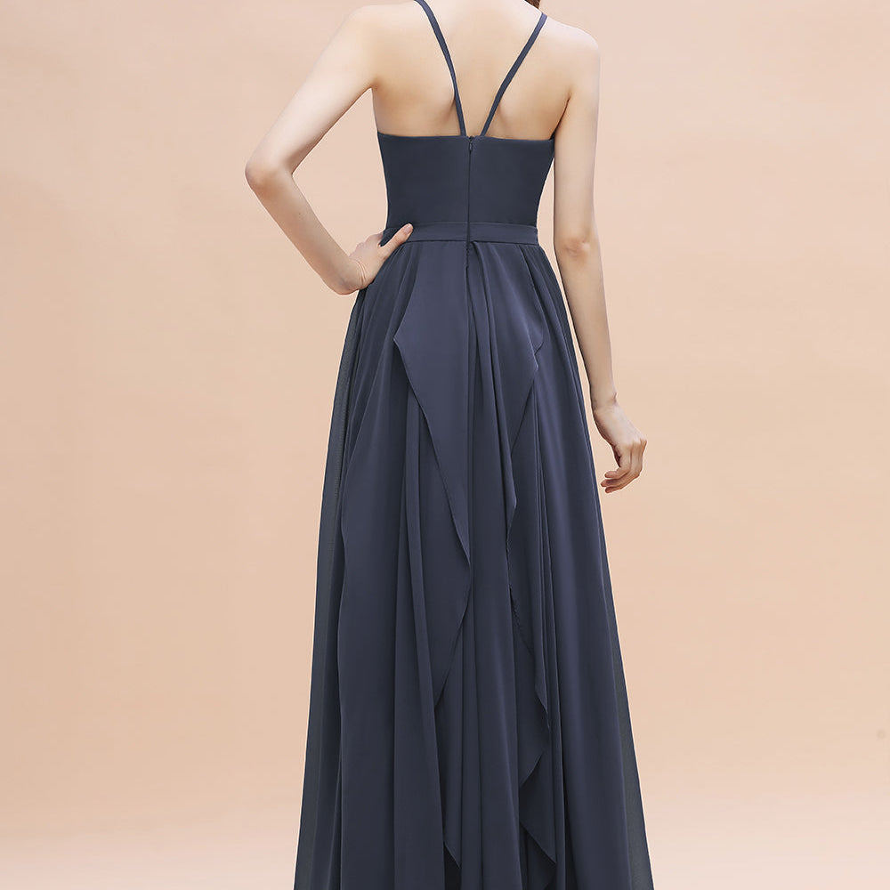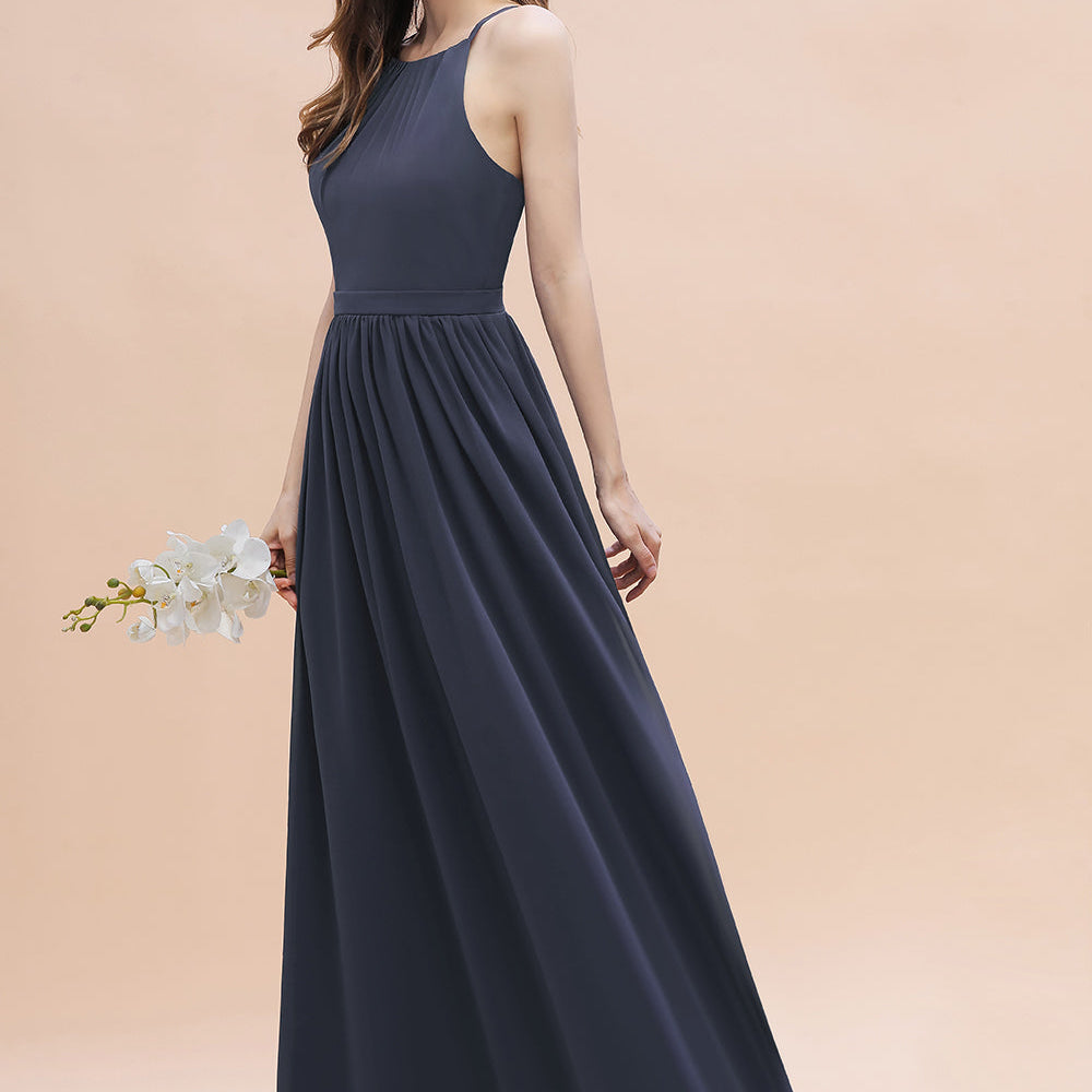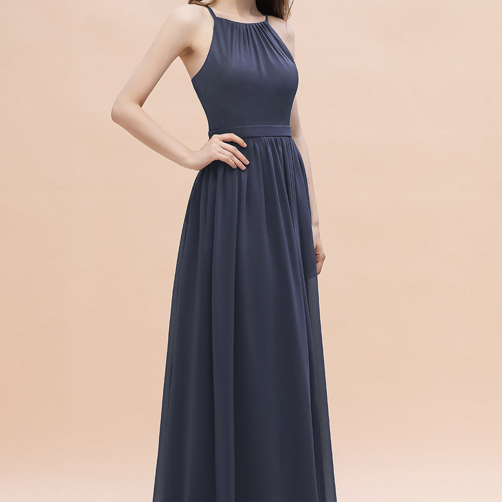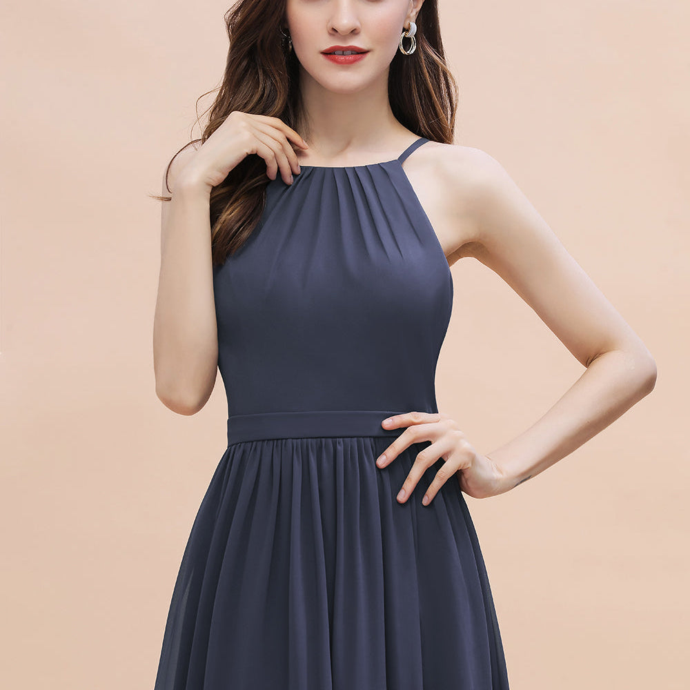 Elegant Long A-Line Halter Chiffon Backless Bridesmaid Dress