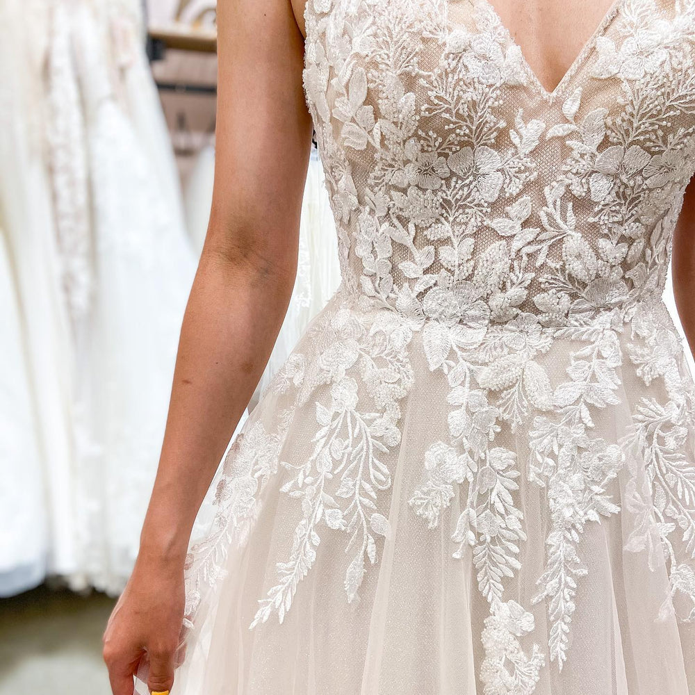 Elegant Long A-line V-neck Lace Tulle Backless Wedding Dresses