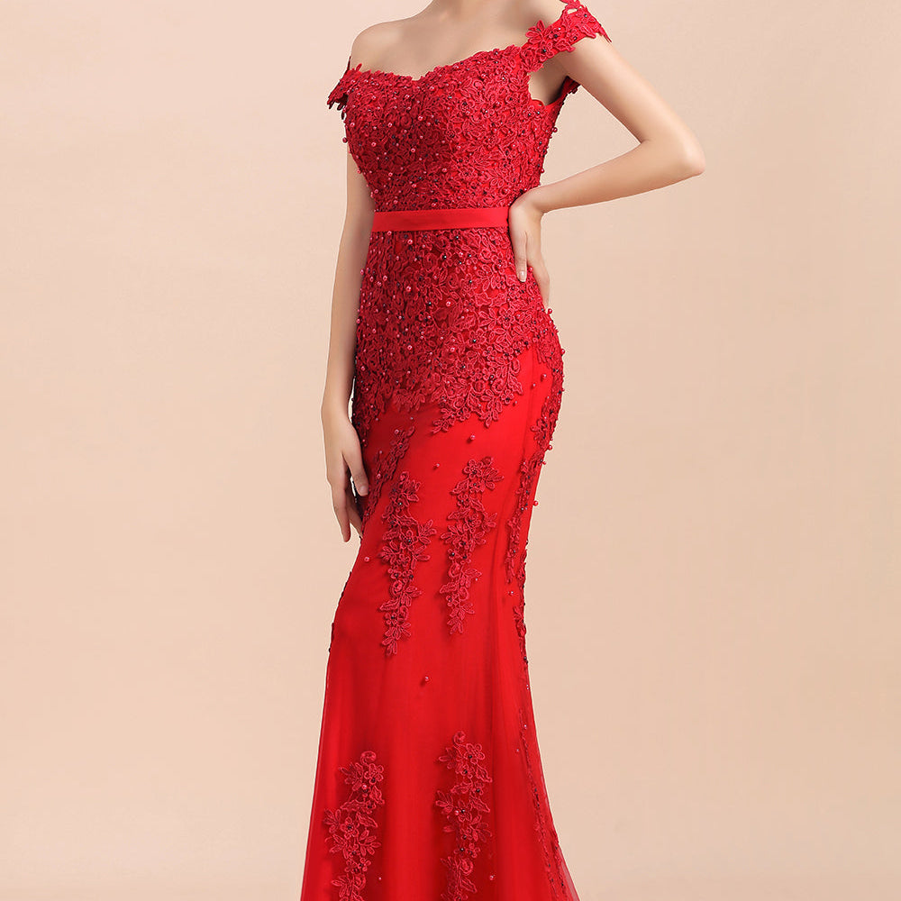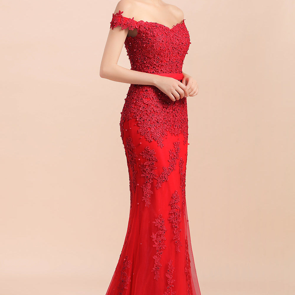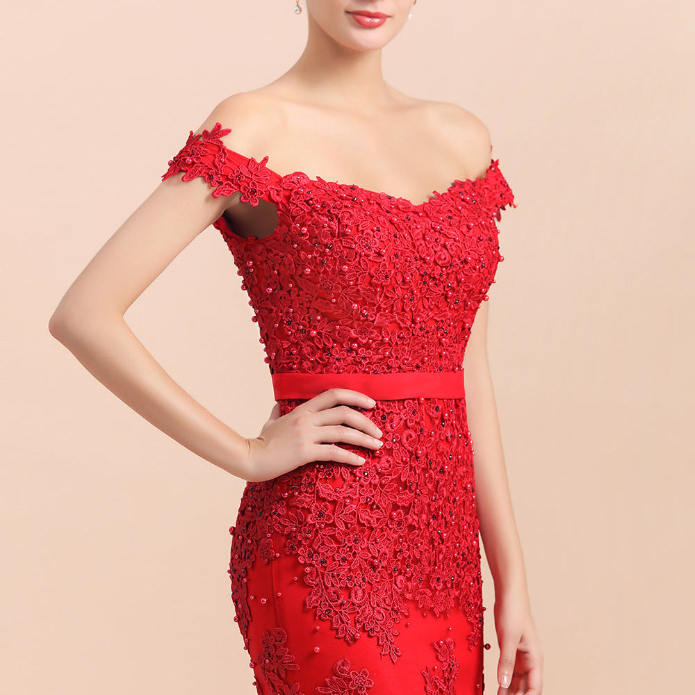 Glamorous Long Mermaid Off-the-Shoulder Appliques Lace Bridesmaid Dress