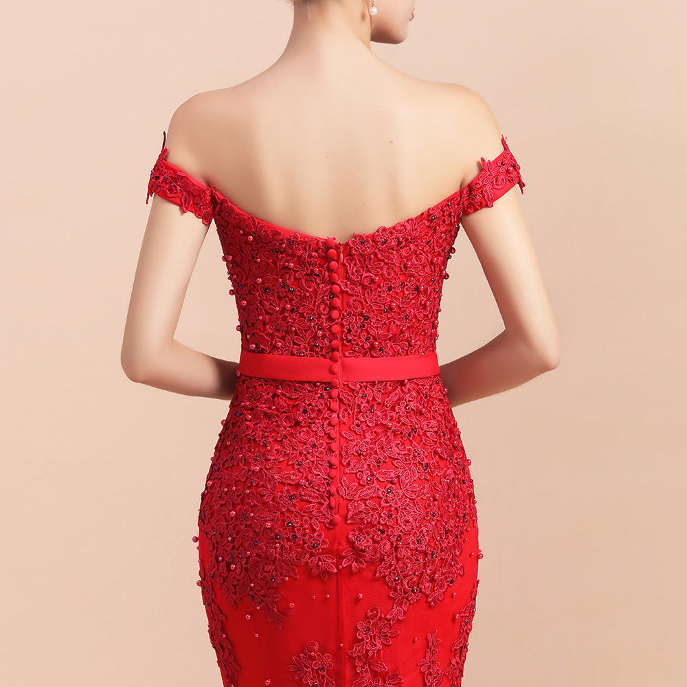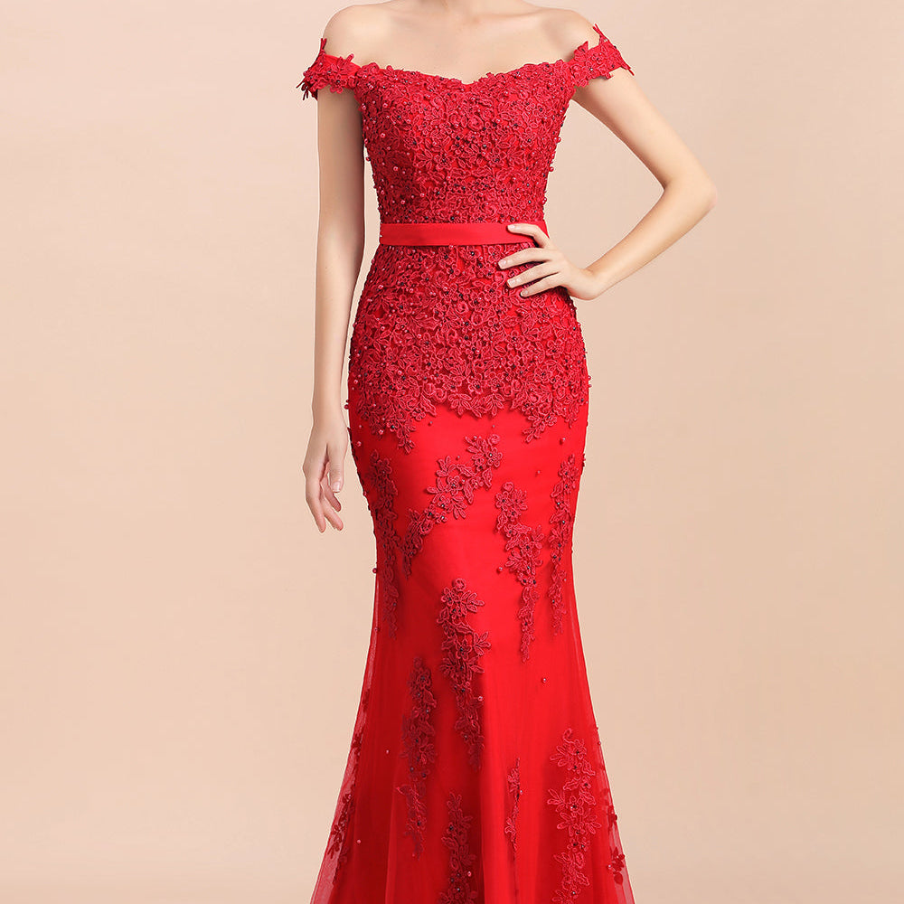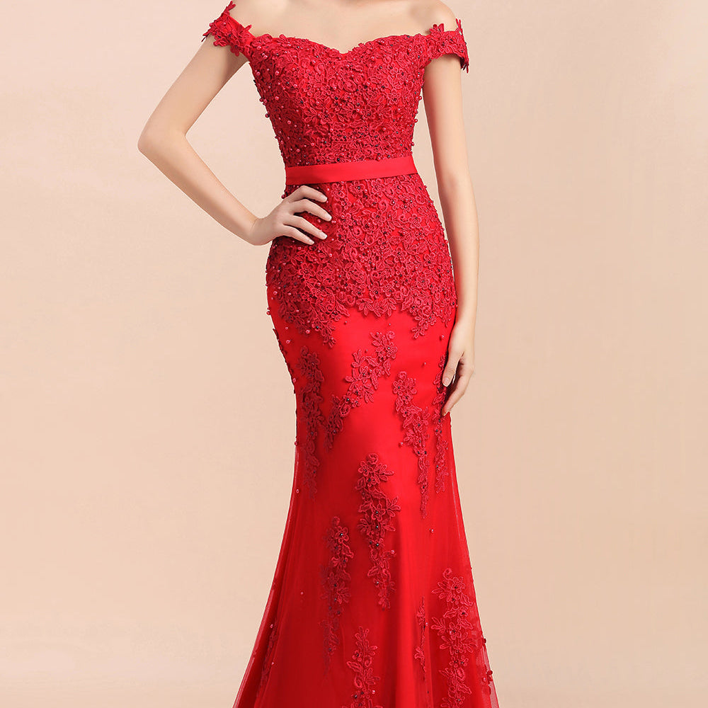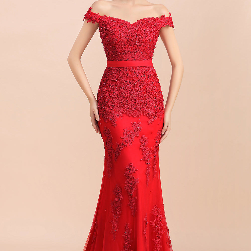 Glamorous Long Mermaid Off-the-Shoulder Appliques Lace Bridesmaid Dress