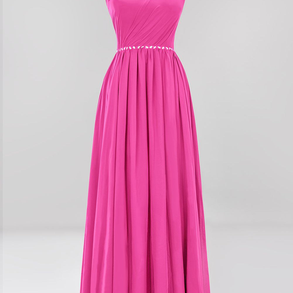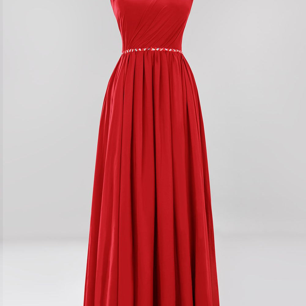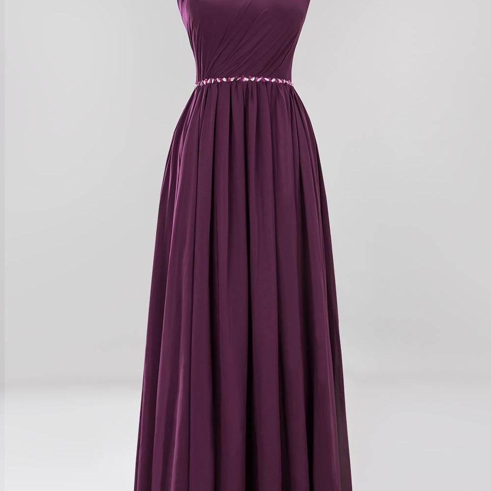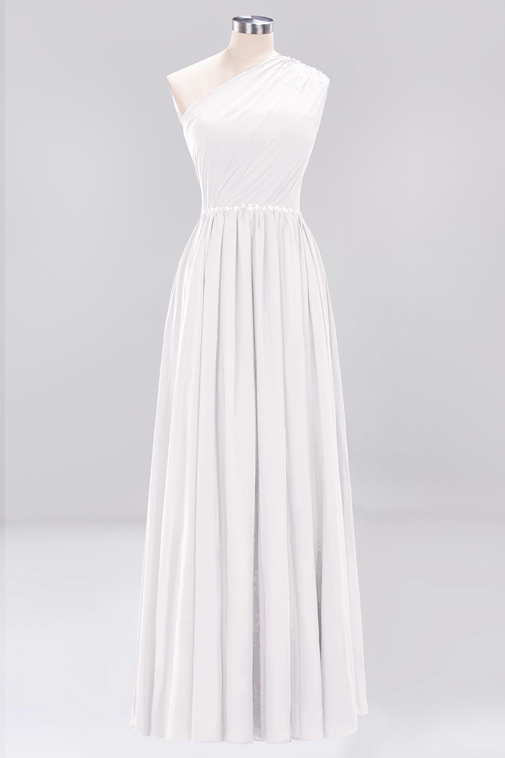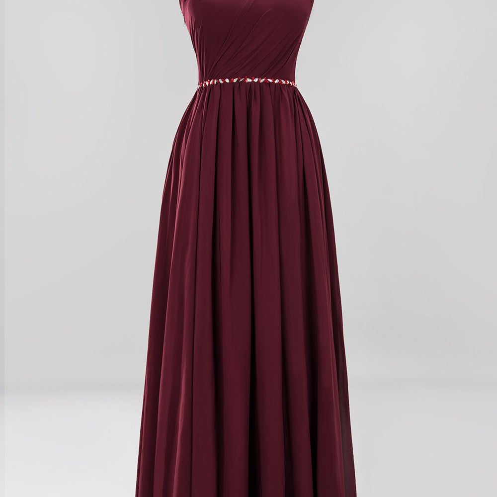 Long A-Line Burgundy Chiffon One Shoulder Bridesmaid Dresses with Beadings