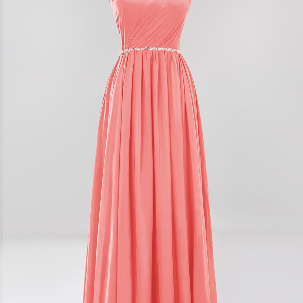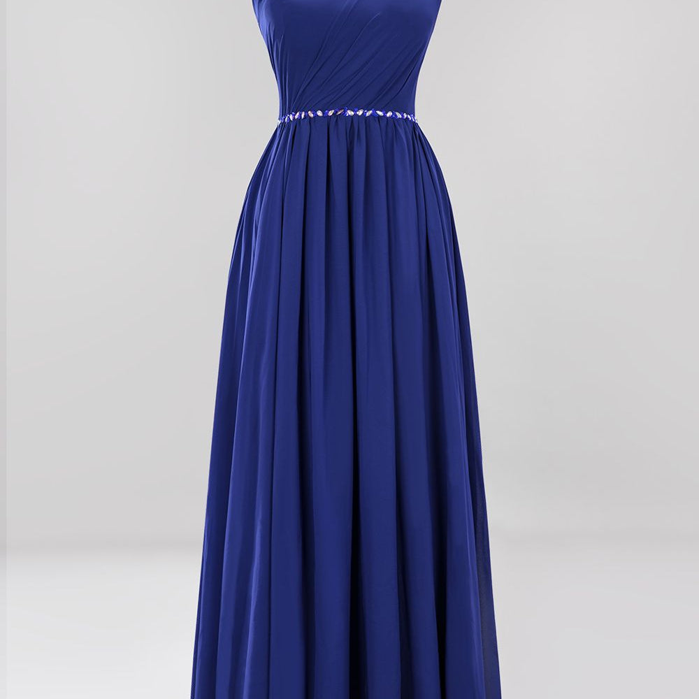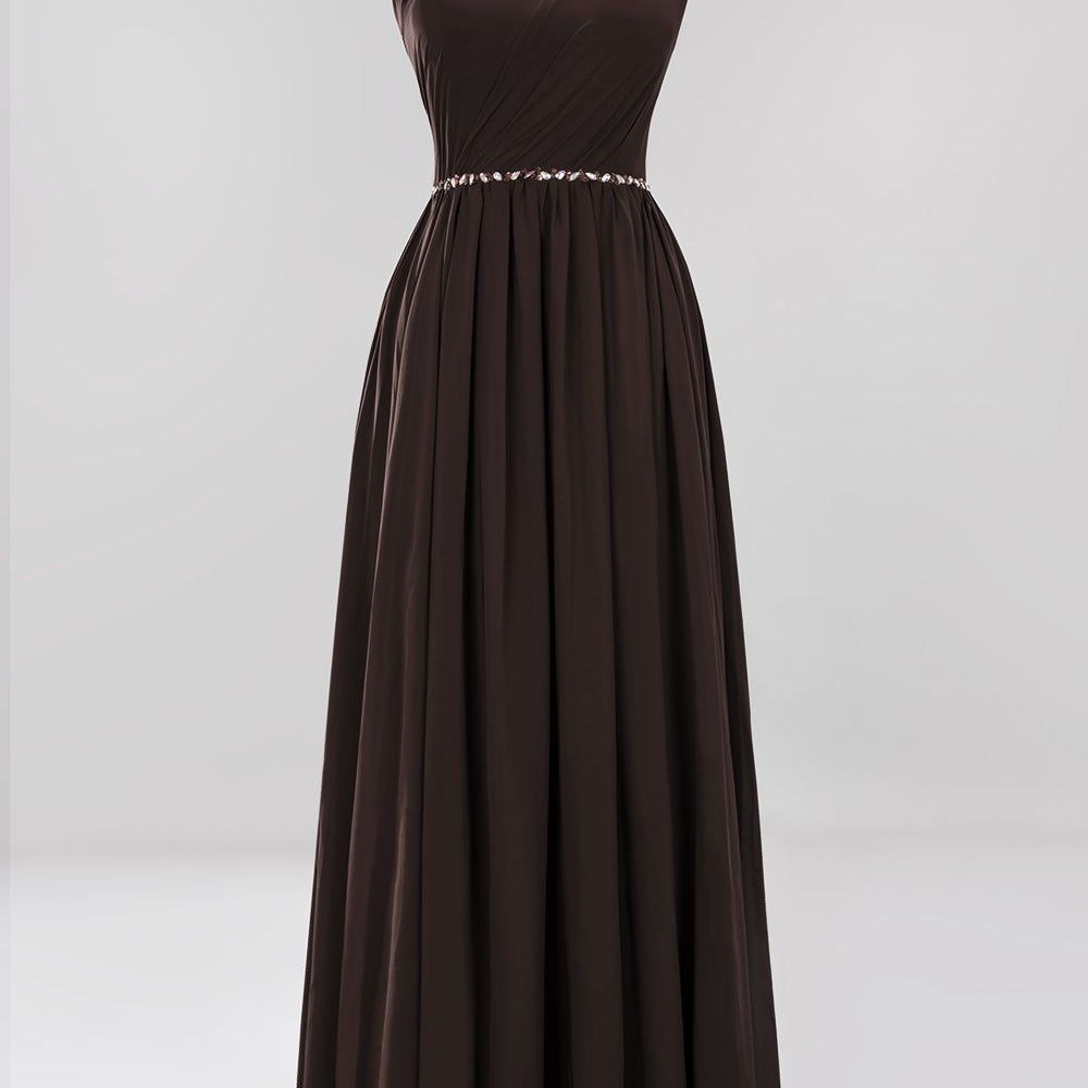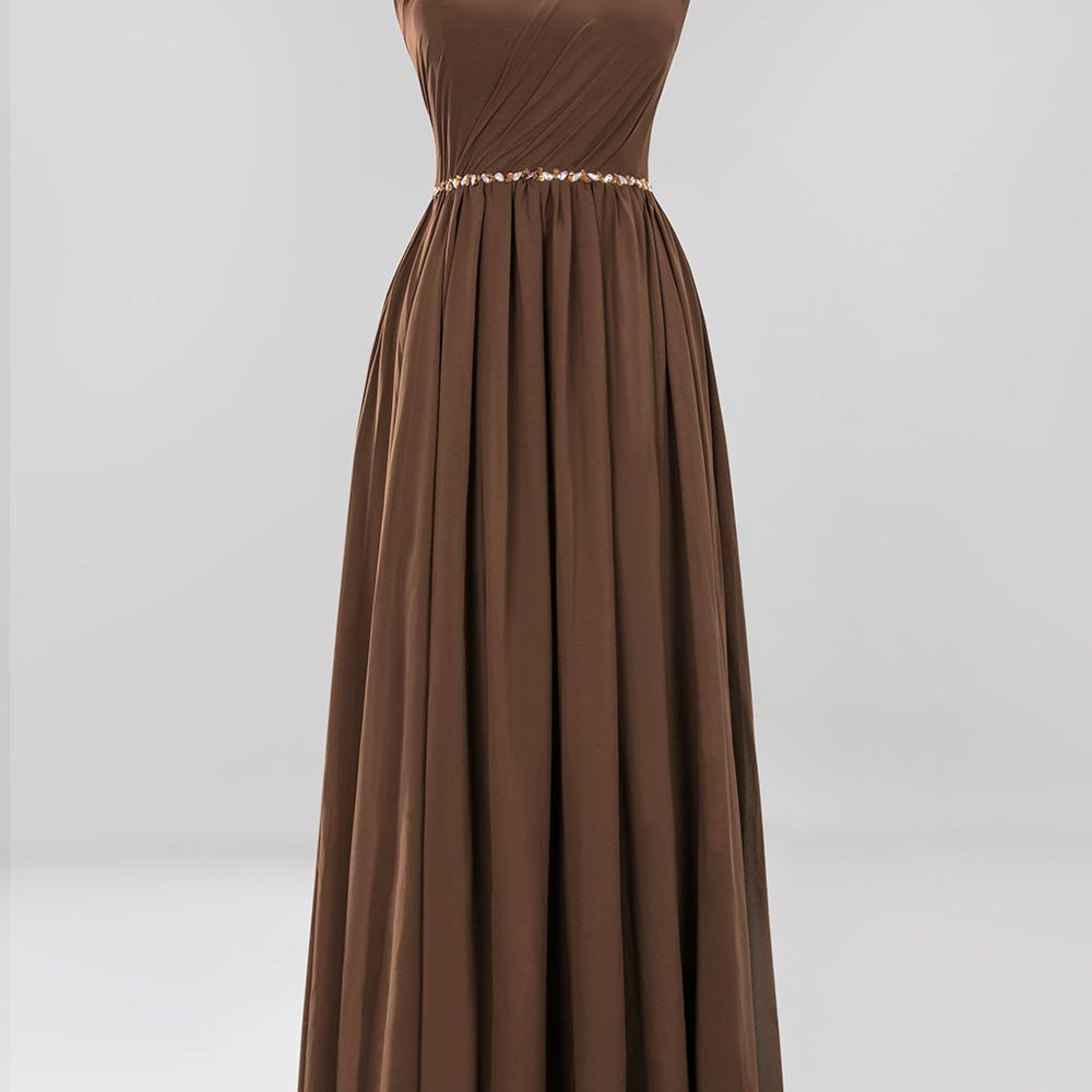 Long A-Line Burgundy Chiffon One Shoulder Bridesmaid Dresses with Beadings