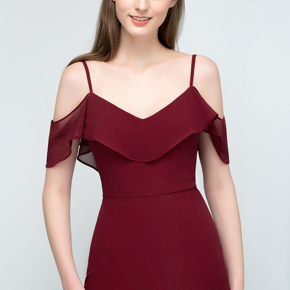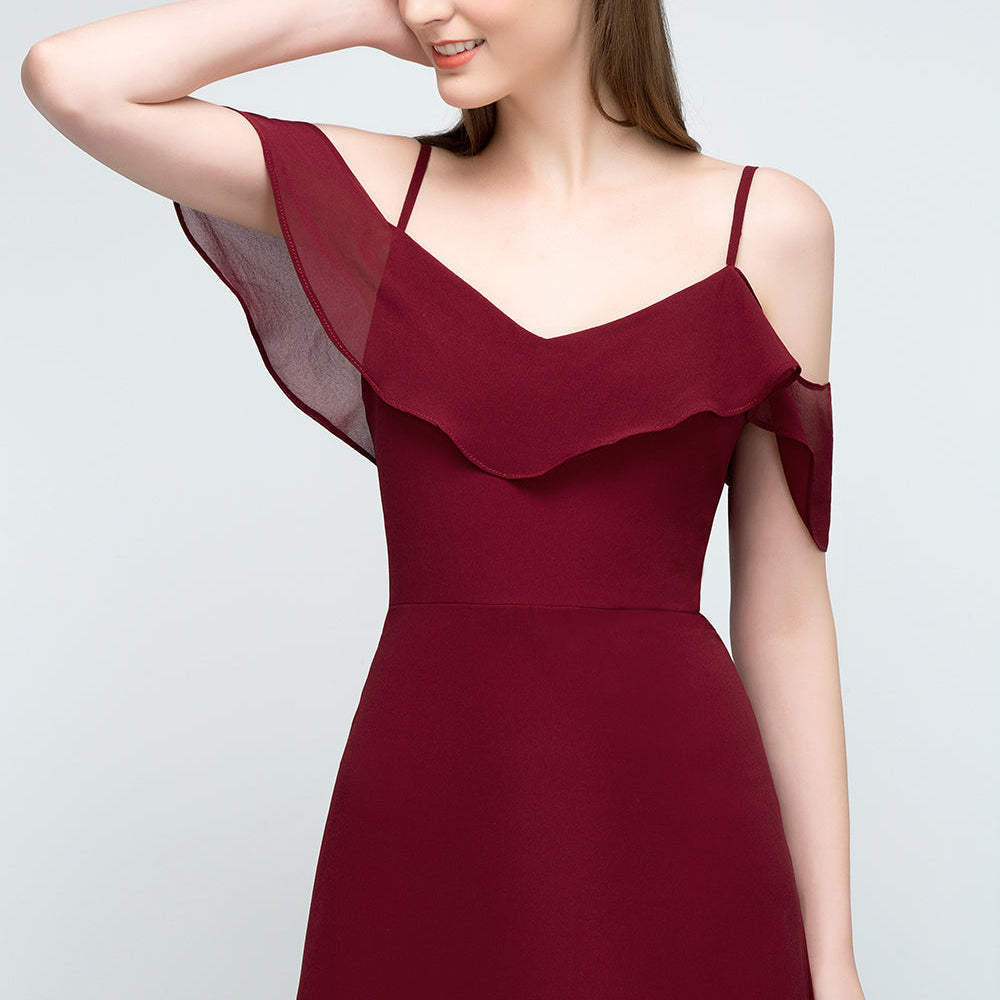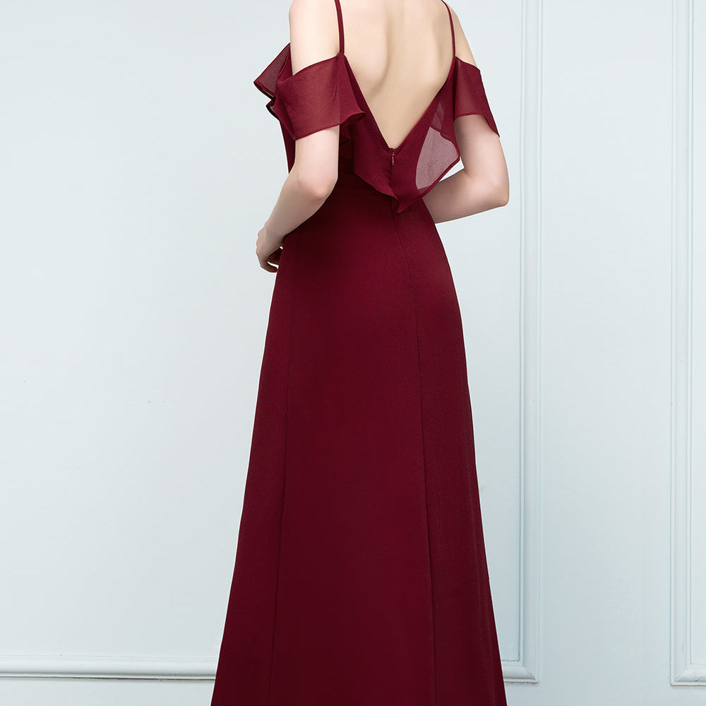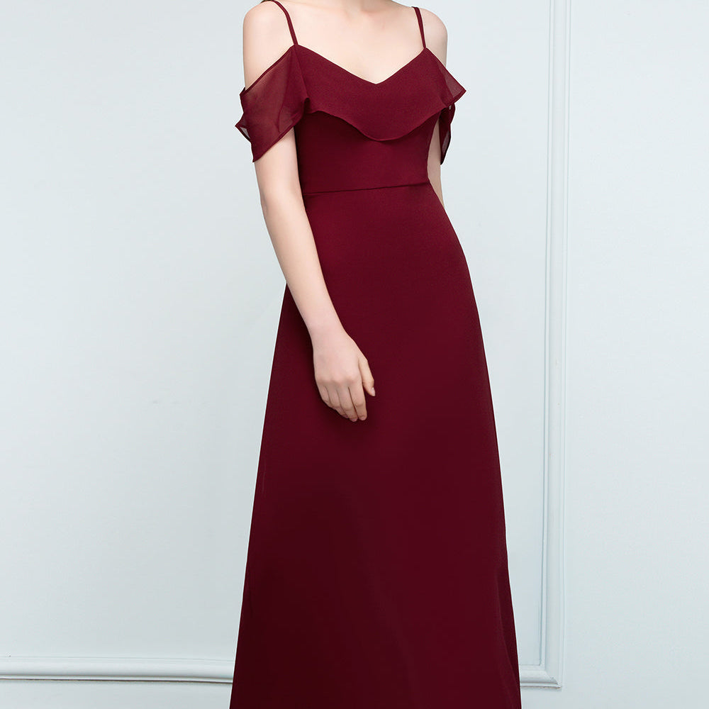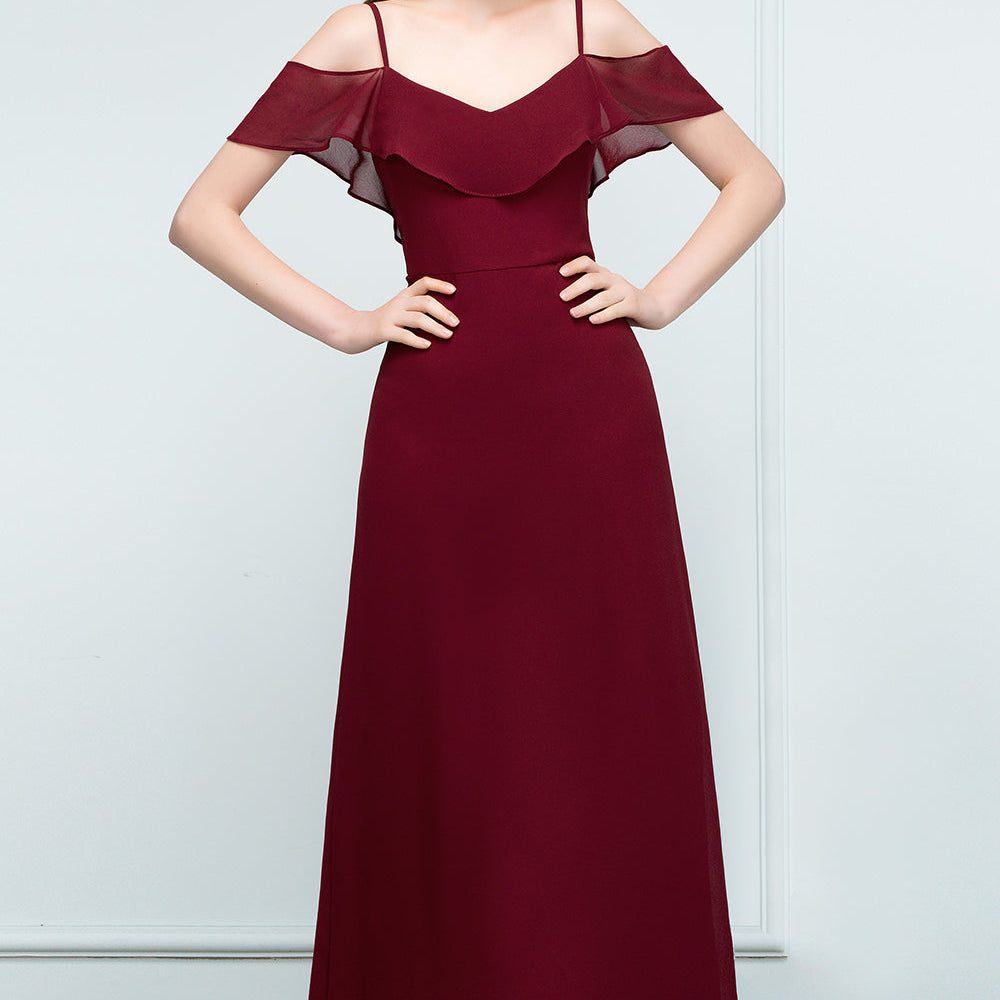 Long A-Line Chiffon Spaghetti Straps Sleeveless Bridesmaid Dresses