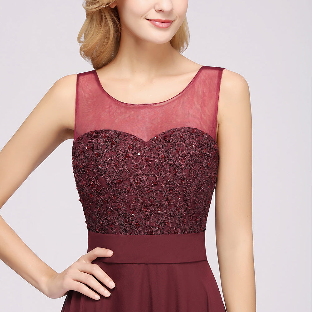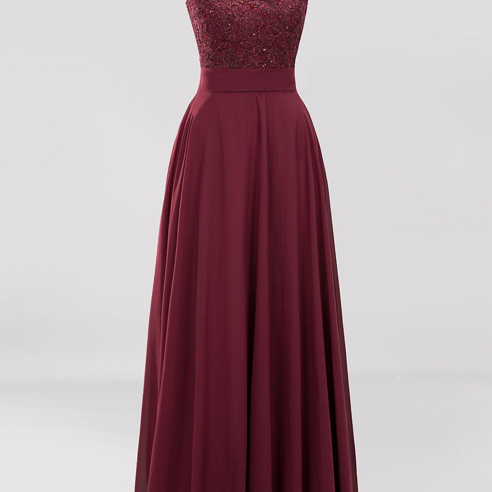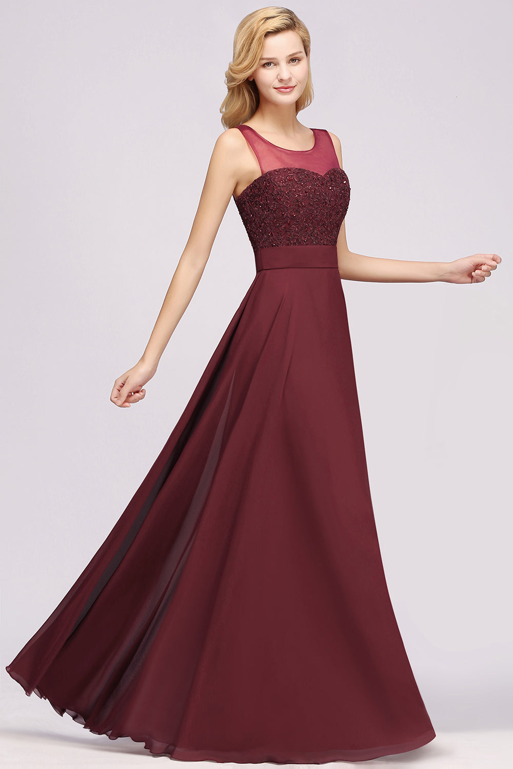 Long A-Line Chiffon Tulle Lace Jewel Bridesmaid Dresses with Sash