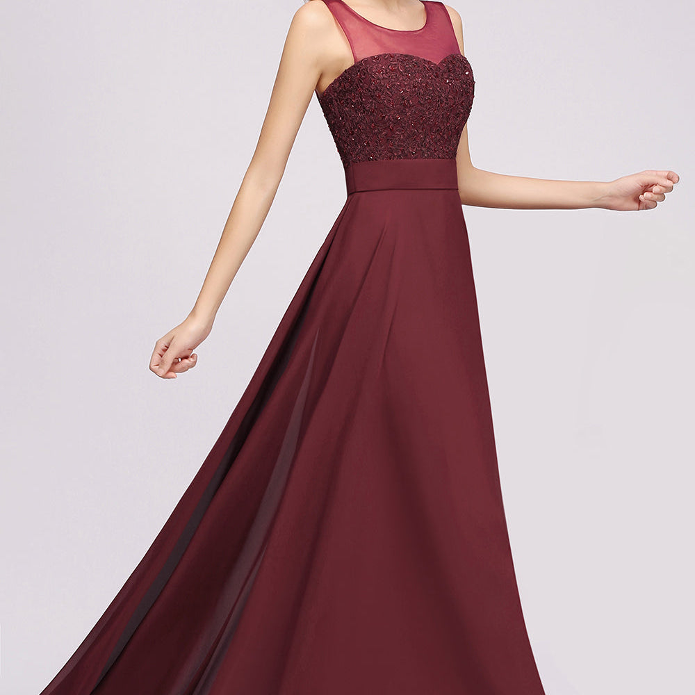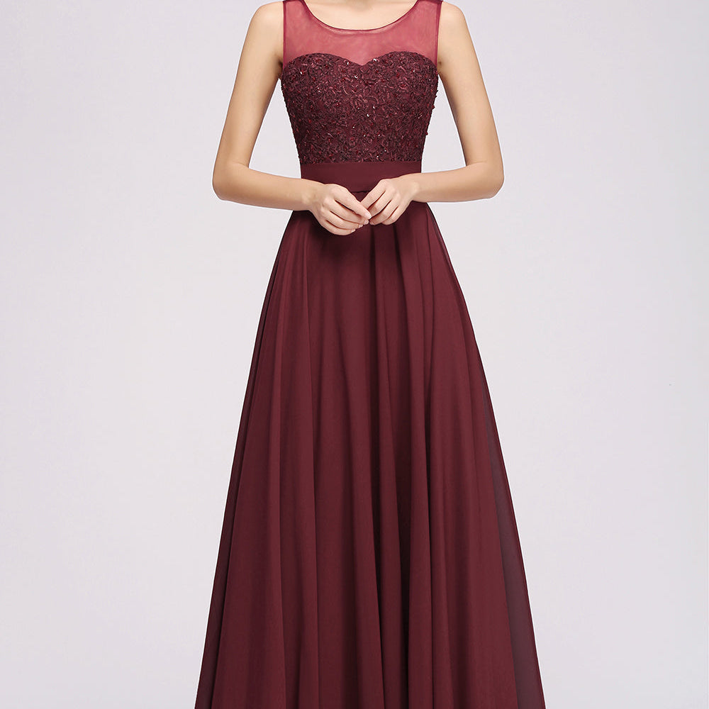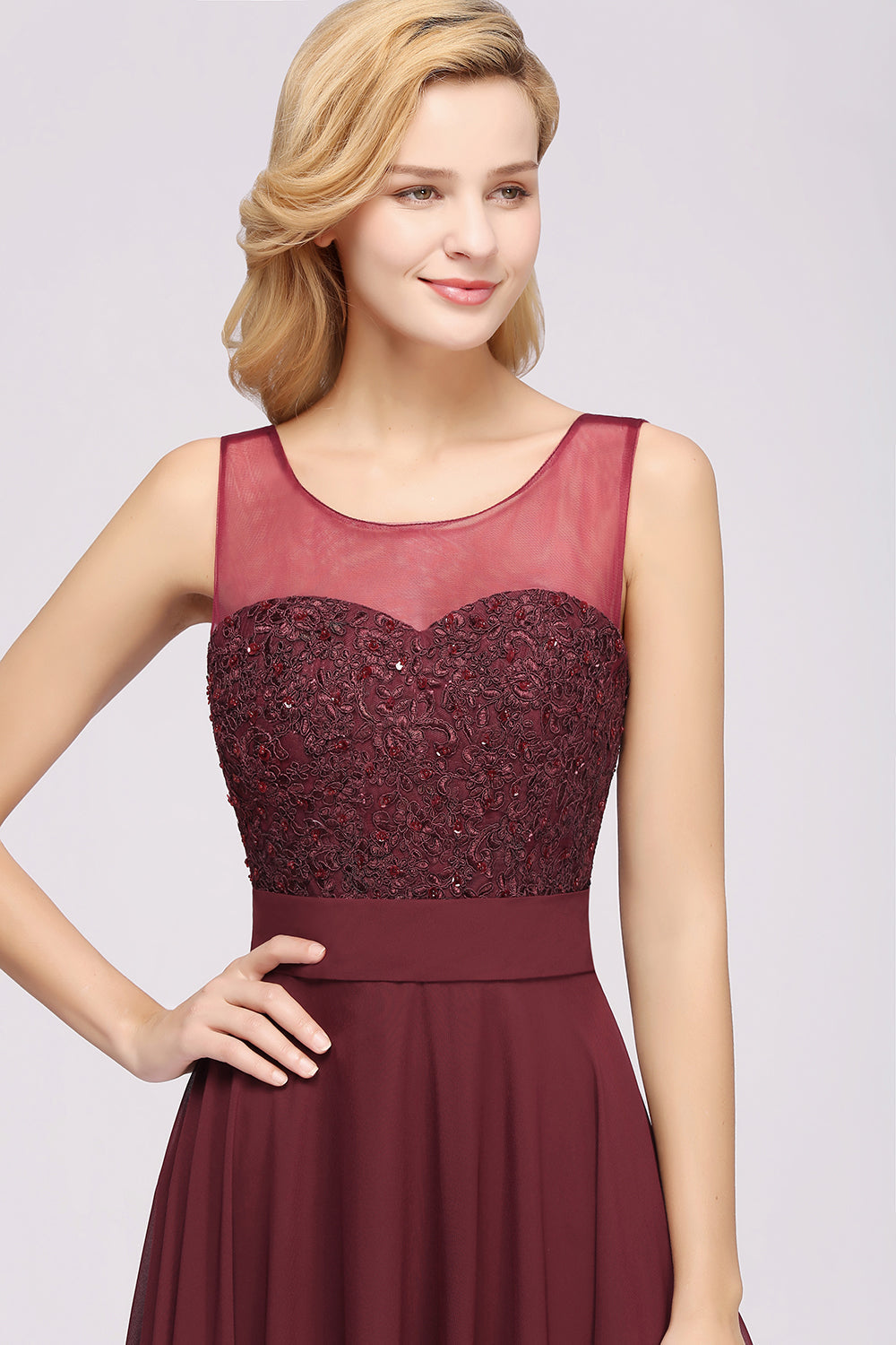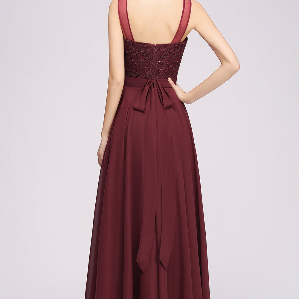Long A-Line Chiffon Tulle Lace Jewel Bridesmaid Dresses with Sash