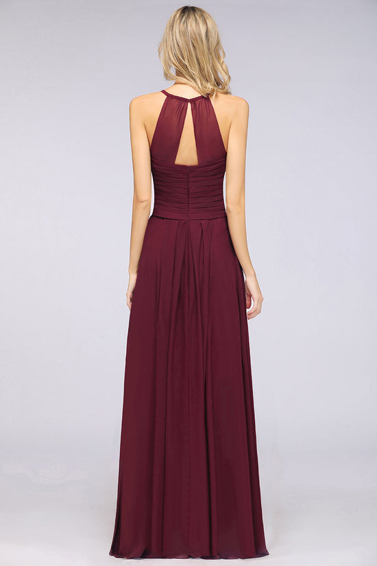 Long A-Line Chiffon V-Neck Burgundy Bridesmaid Dress with Ruffles
