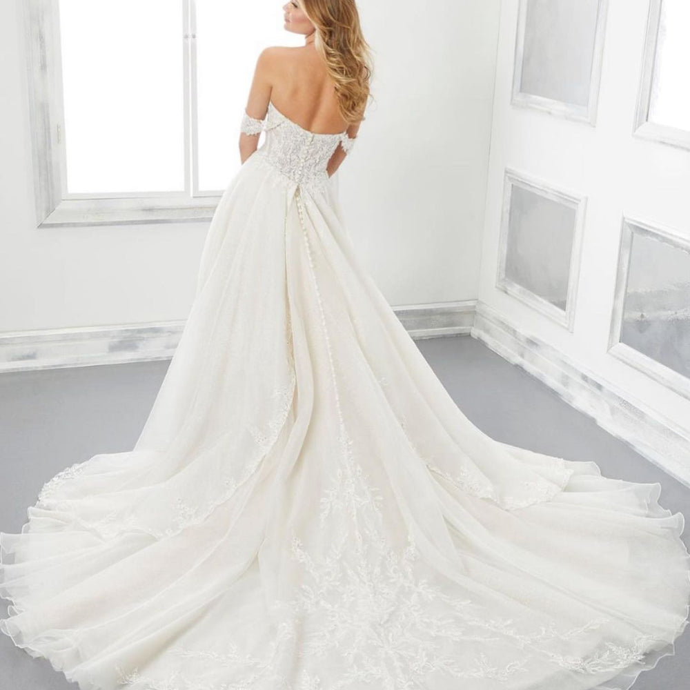 Long A-Line Sweetheart Off-the-Shoulder Backless Wedding Dress With Appliques Lace