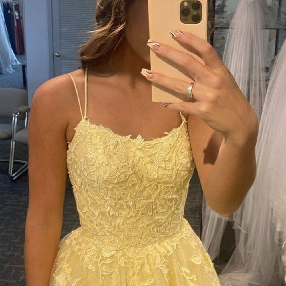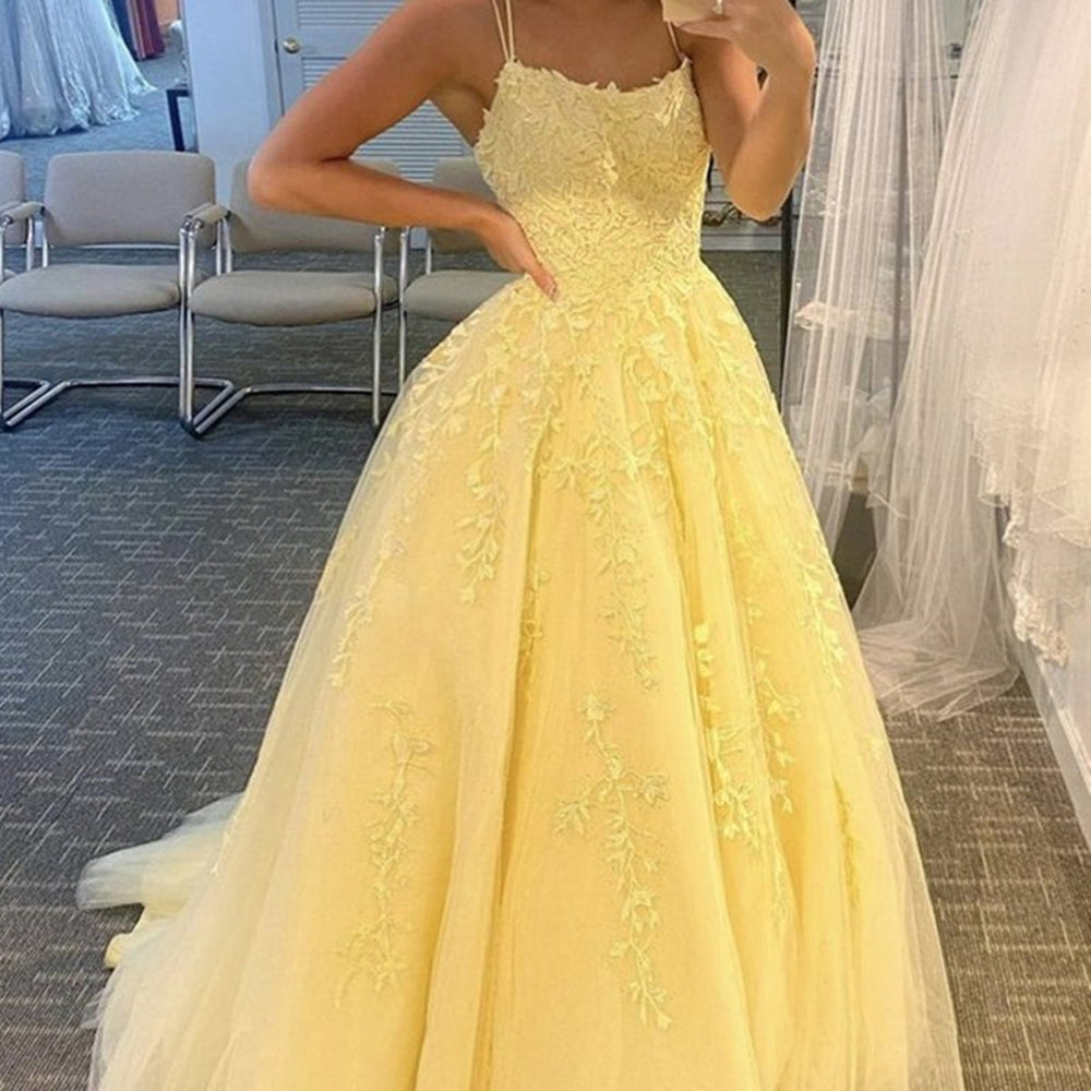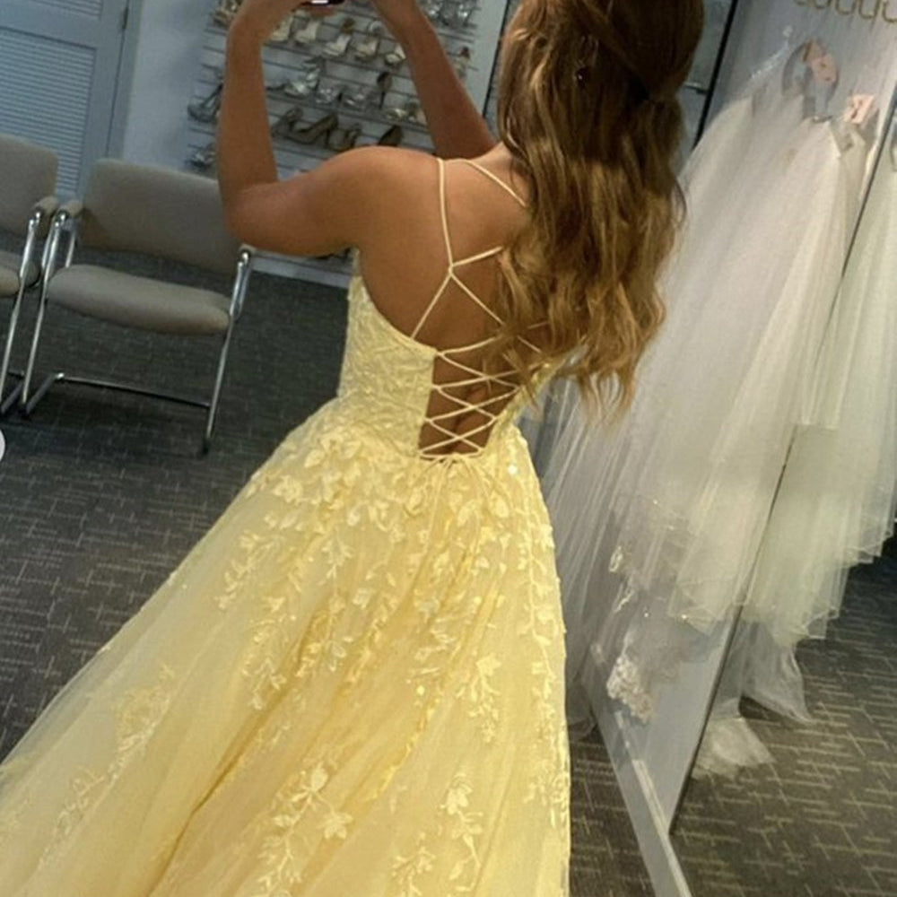 Long A-line Tulle Lace Backless Formal Graduation Prom Dresses