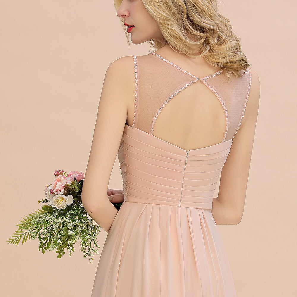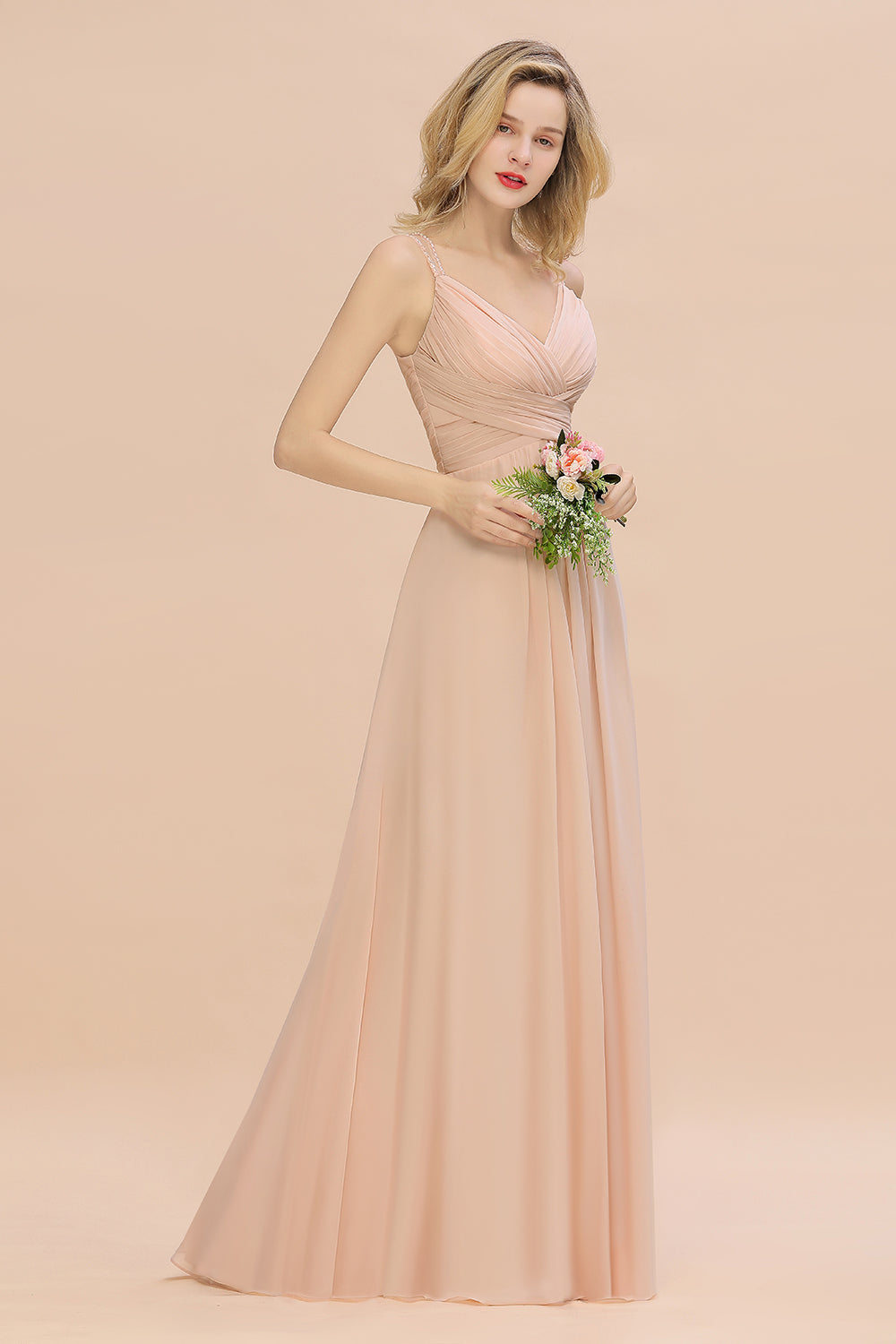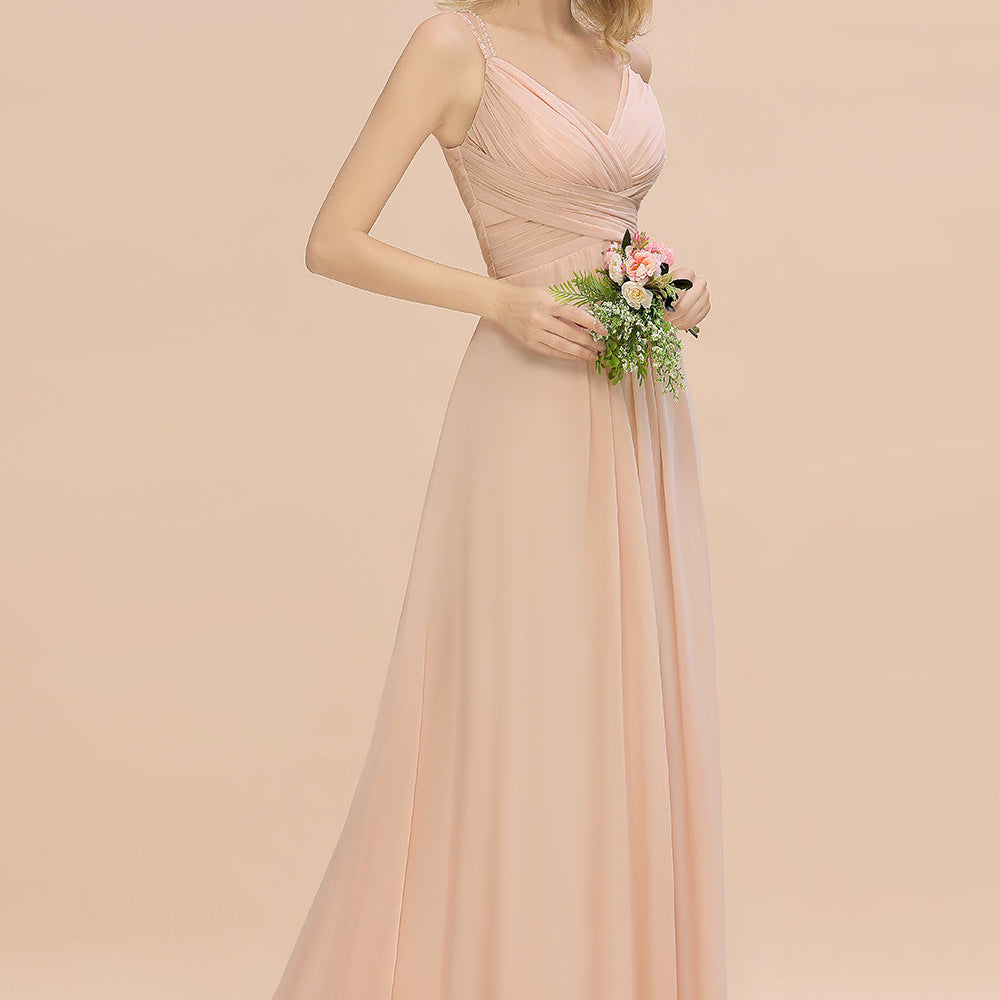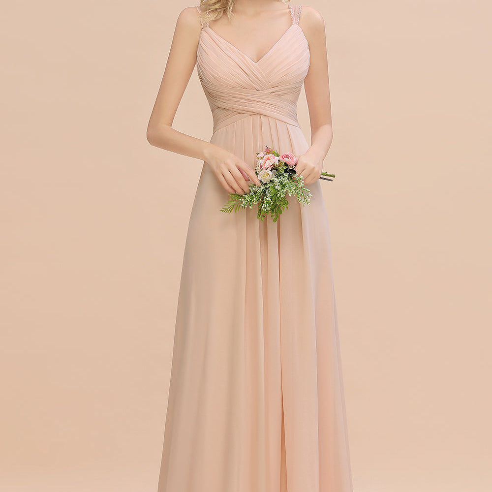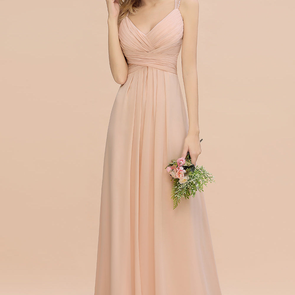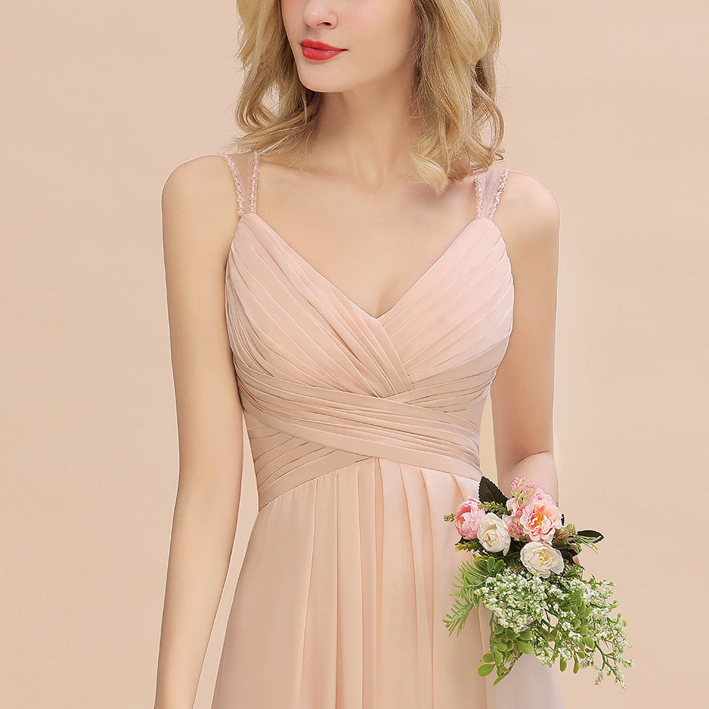 Long A-Line V-neck Spaghetti Straps Chiffon Bridesmaid Dresses