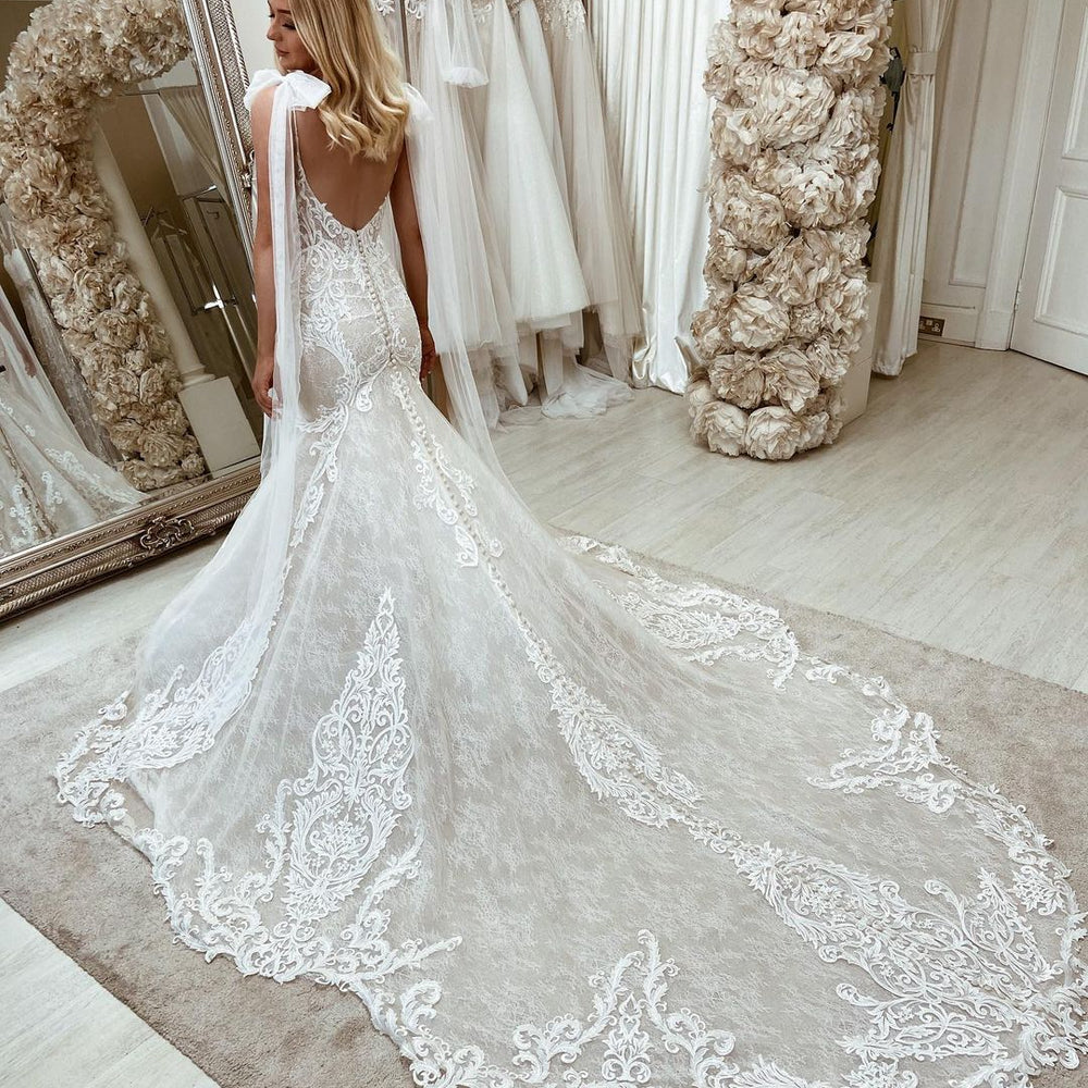 Long Mermaid Lace Sweetheart Backless Wedding Dress with Sweep Train