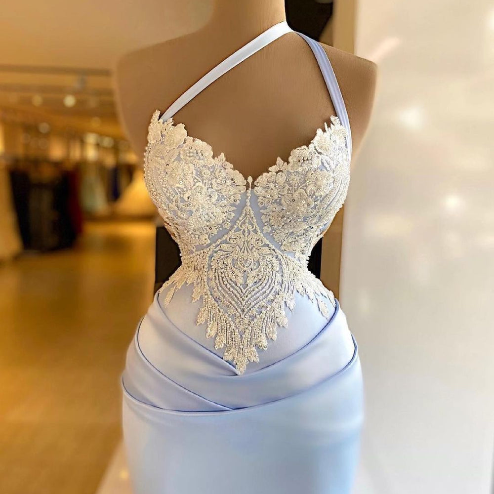 Long One Shoulder Mermaid Prom Dress with Appliques Lace
