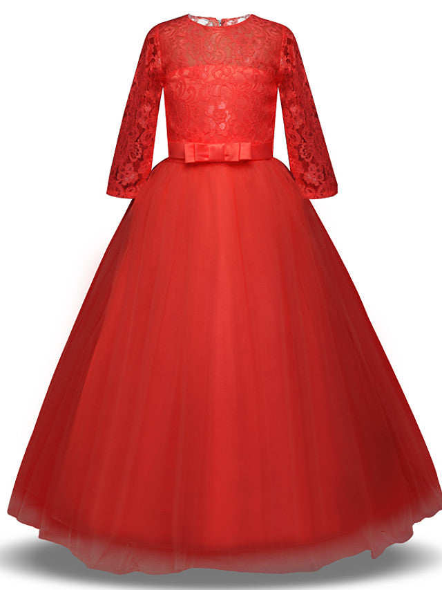 Long Princess Lace Tulle Wedding Party Pageant Flower Girl Dresseswith Sleeves