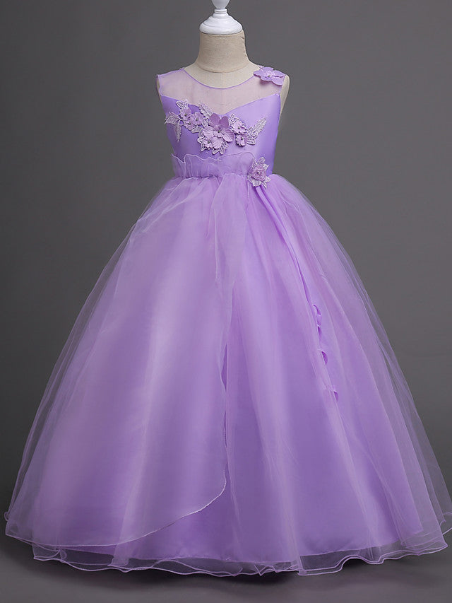 Long Princess Tulle Wedding Birthday Pageant Flower Girl Dresses