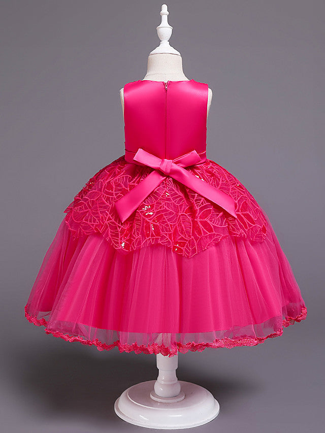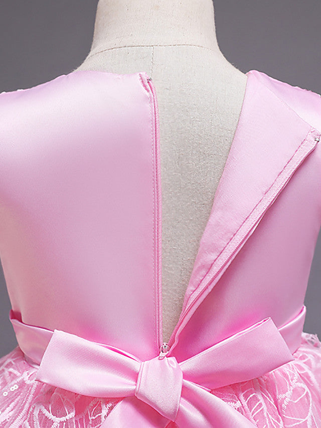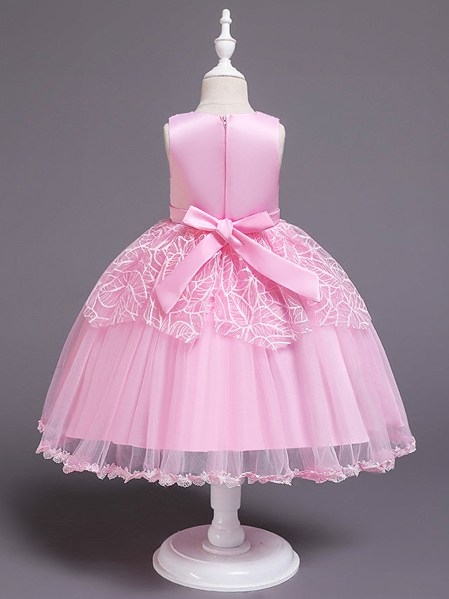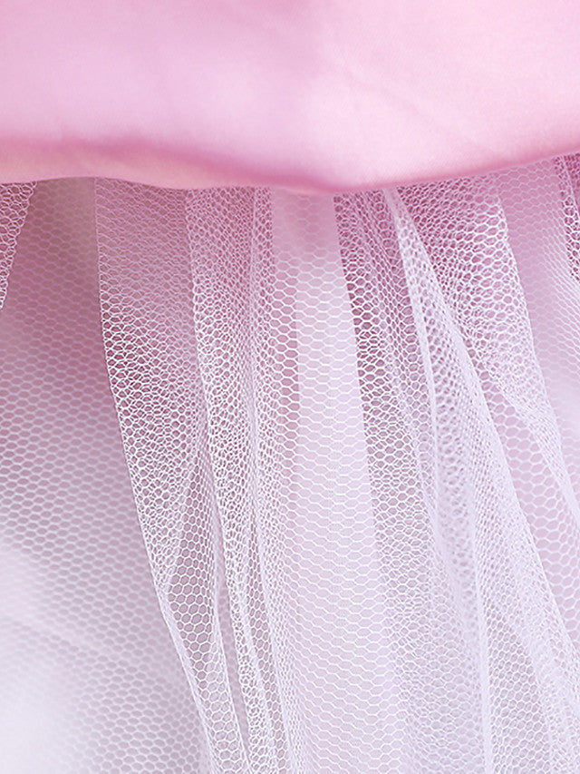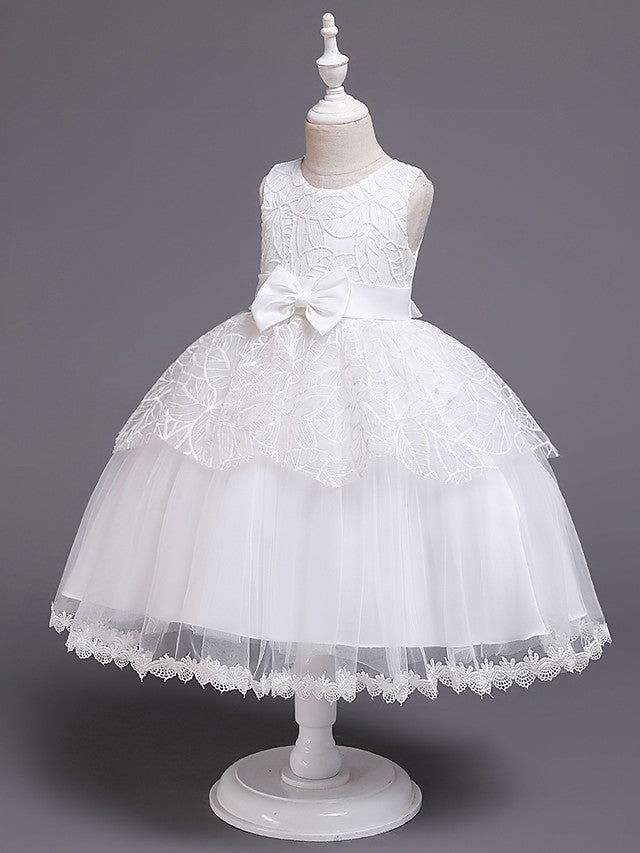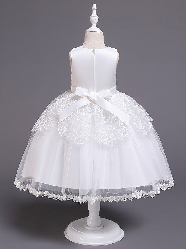 Princess Satin Tulle Sleeveless Jewel Neck Wedding First Communion Birthday Flower Girl Dresses