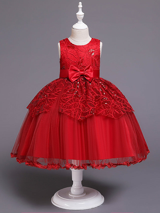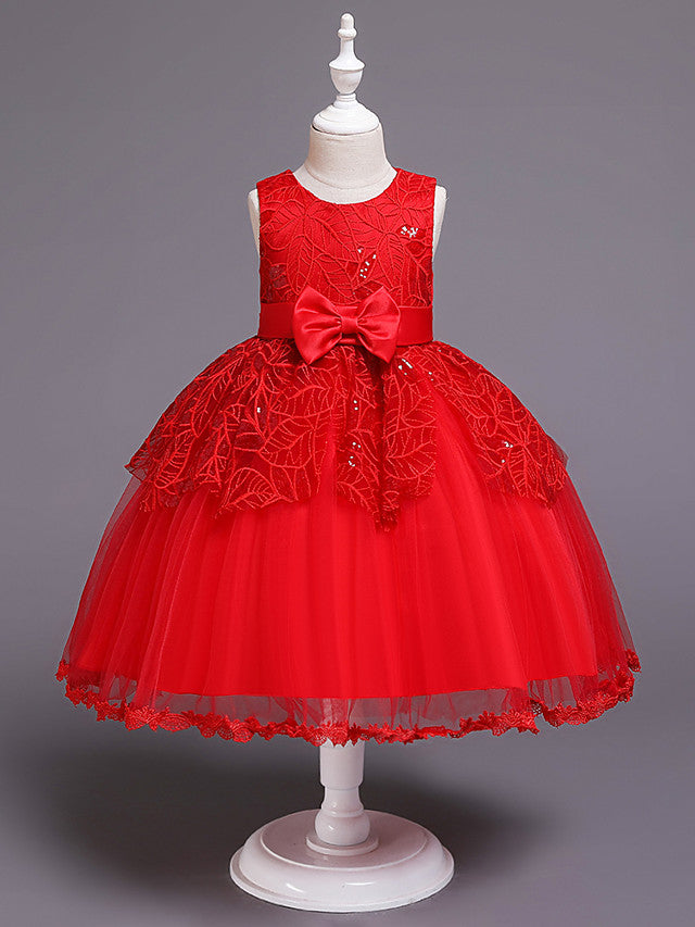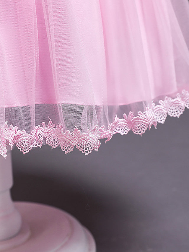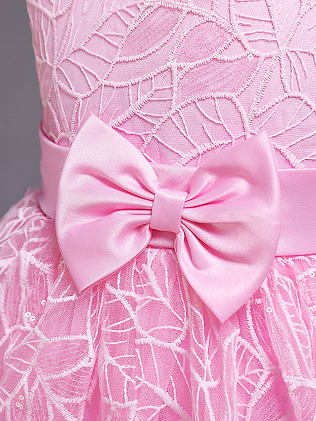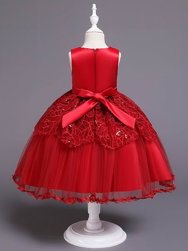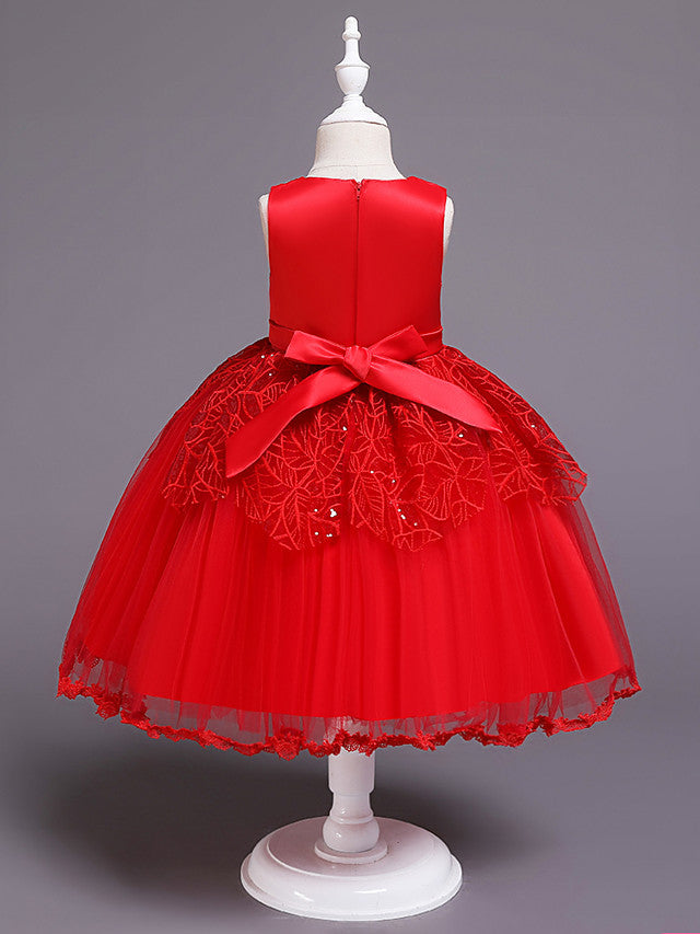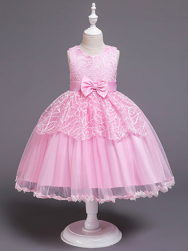 Princess Satin Tulle Sleeveless Jewel Neck Wedding First Communion Birthday Flower Girl Dresses