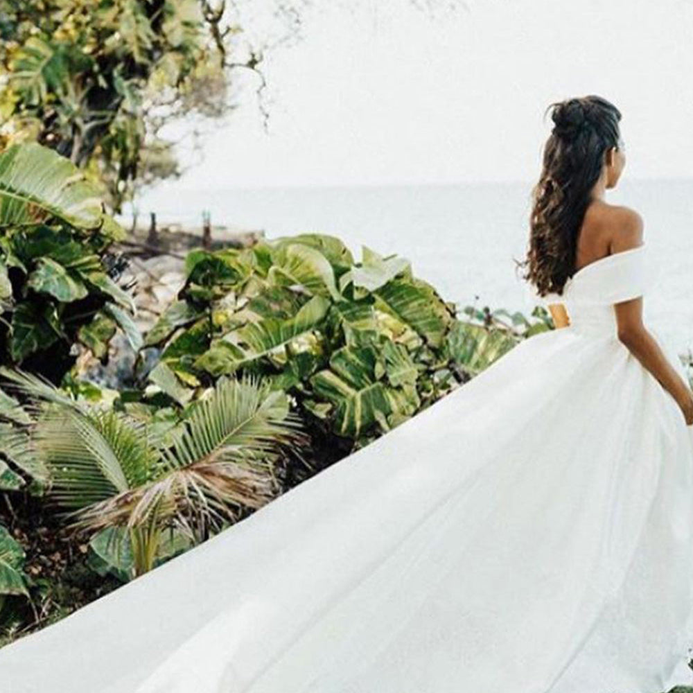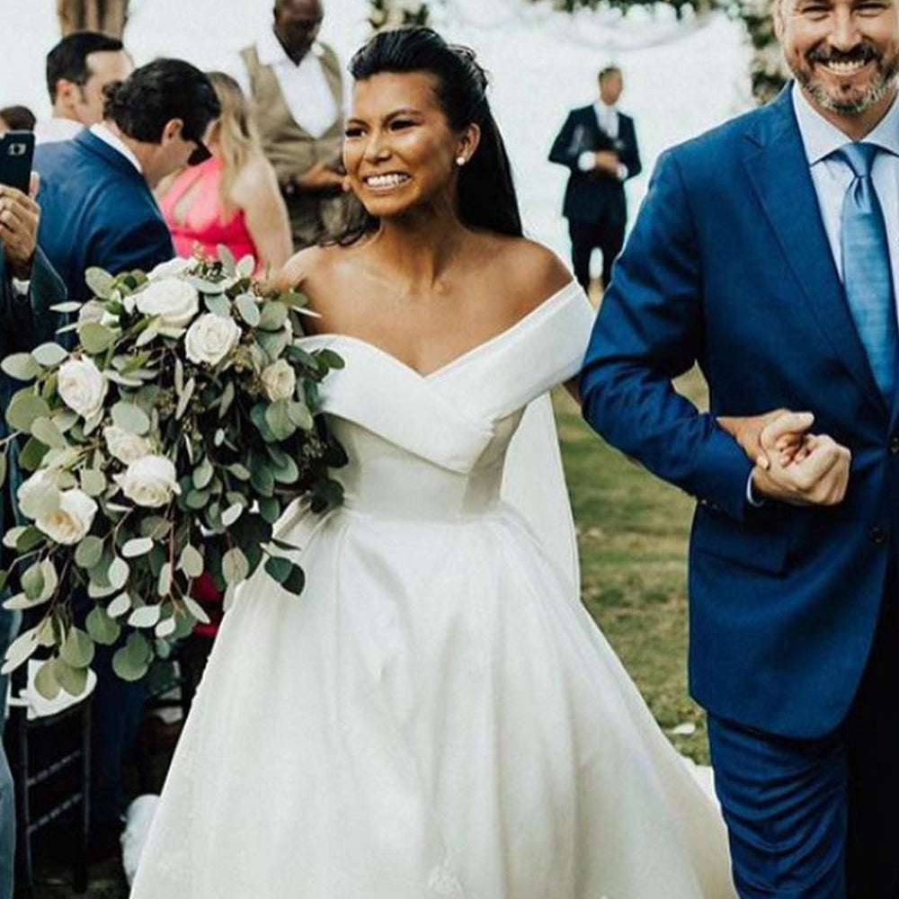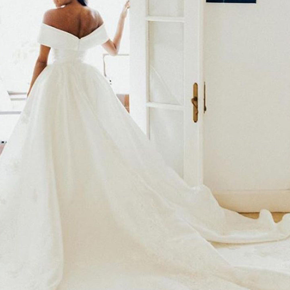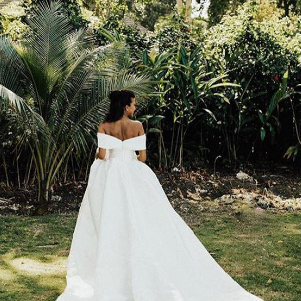 White Long Ball Gown Off The Shoulder Satin Wedding Dress